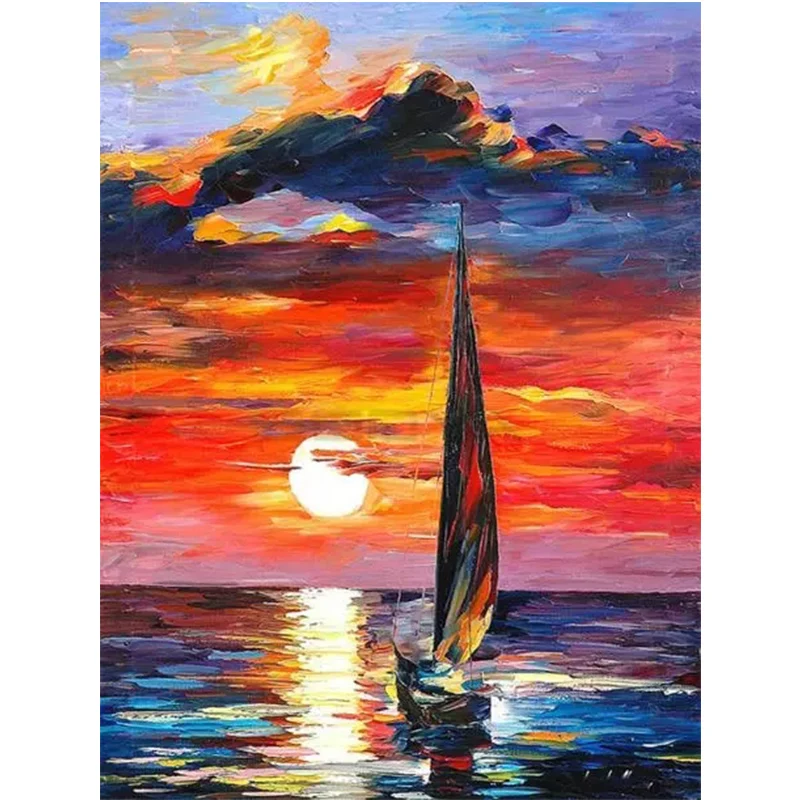 5d алмазная живопись, полная круглая Алмазная вышивка, Настенная Наклейка ручной работы, картина маслом, закат, парусник, домашний декор E1219