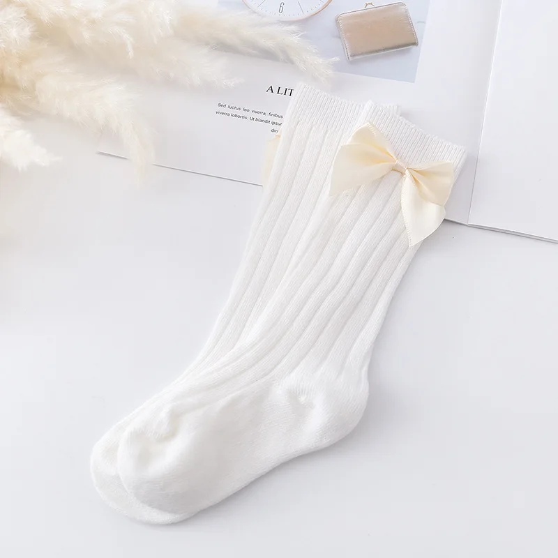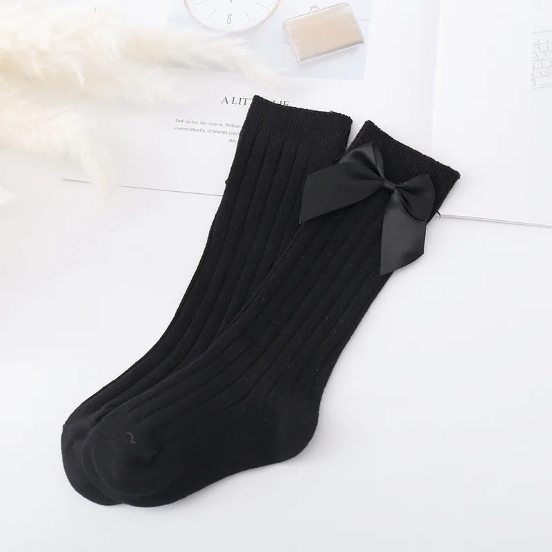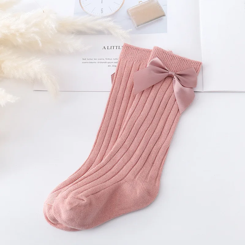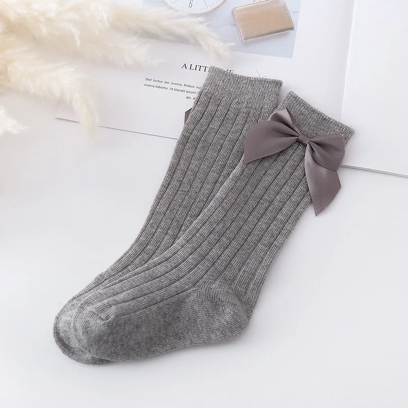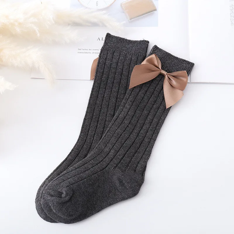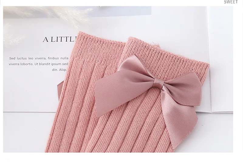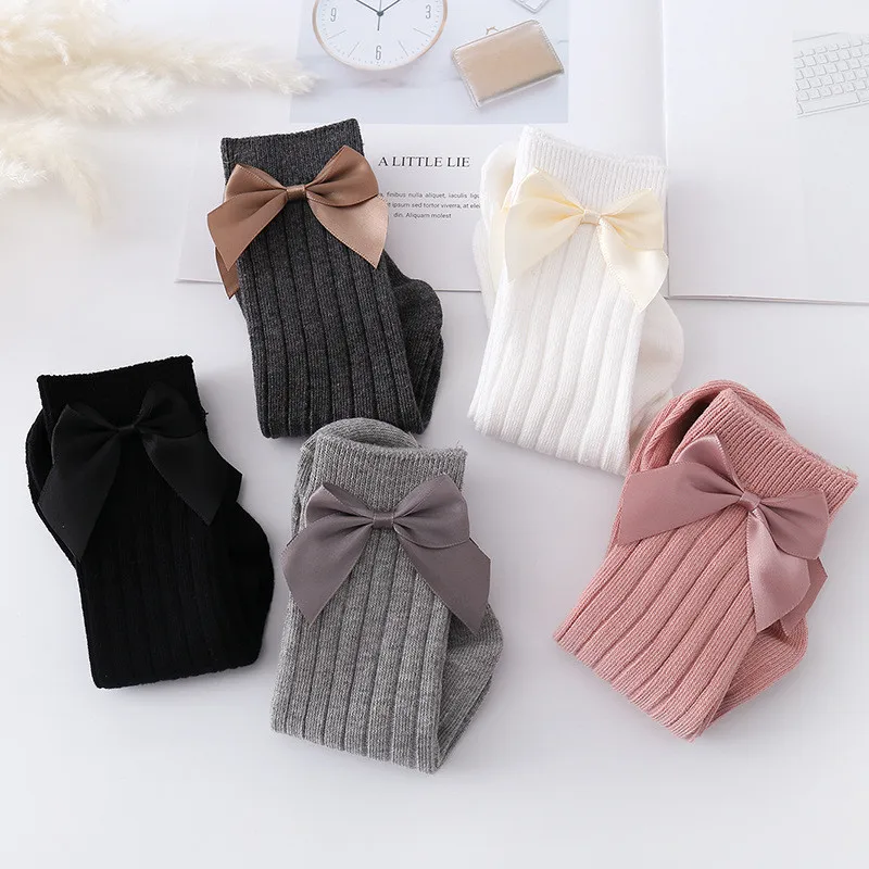 Платье для маленьких девочек Гольфы с большим бантом; Сезон осень-зима; Мягкий хлопковый носок однотонная Детская кофта в полоску для детей ясельного возраста гольфы для От 1 до 12 лет детская одежда