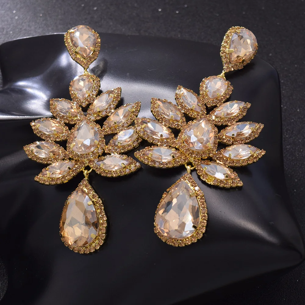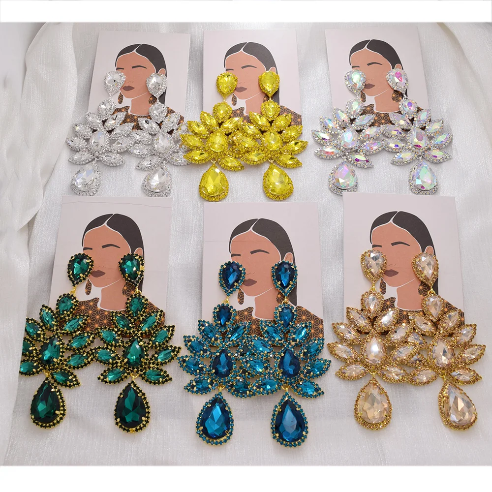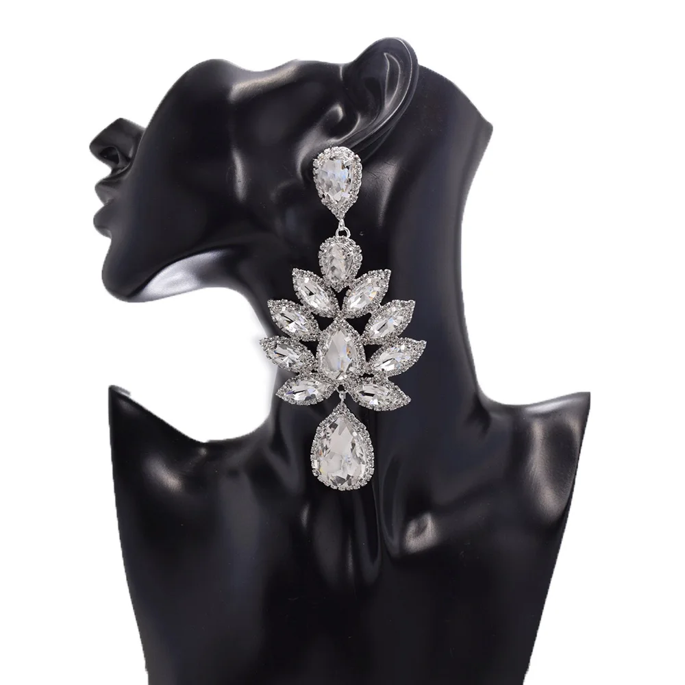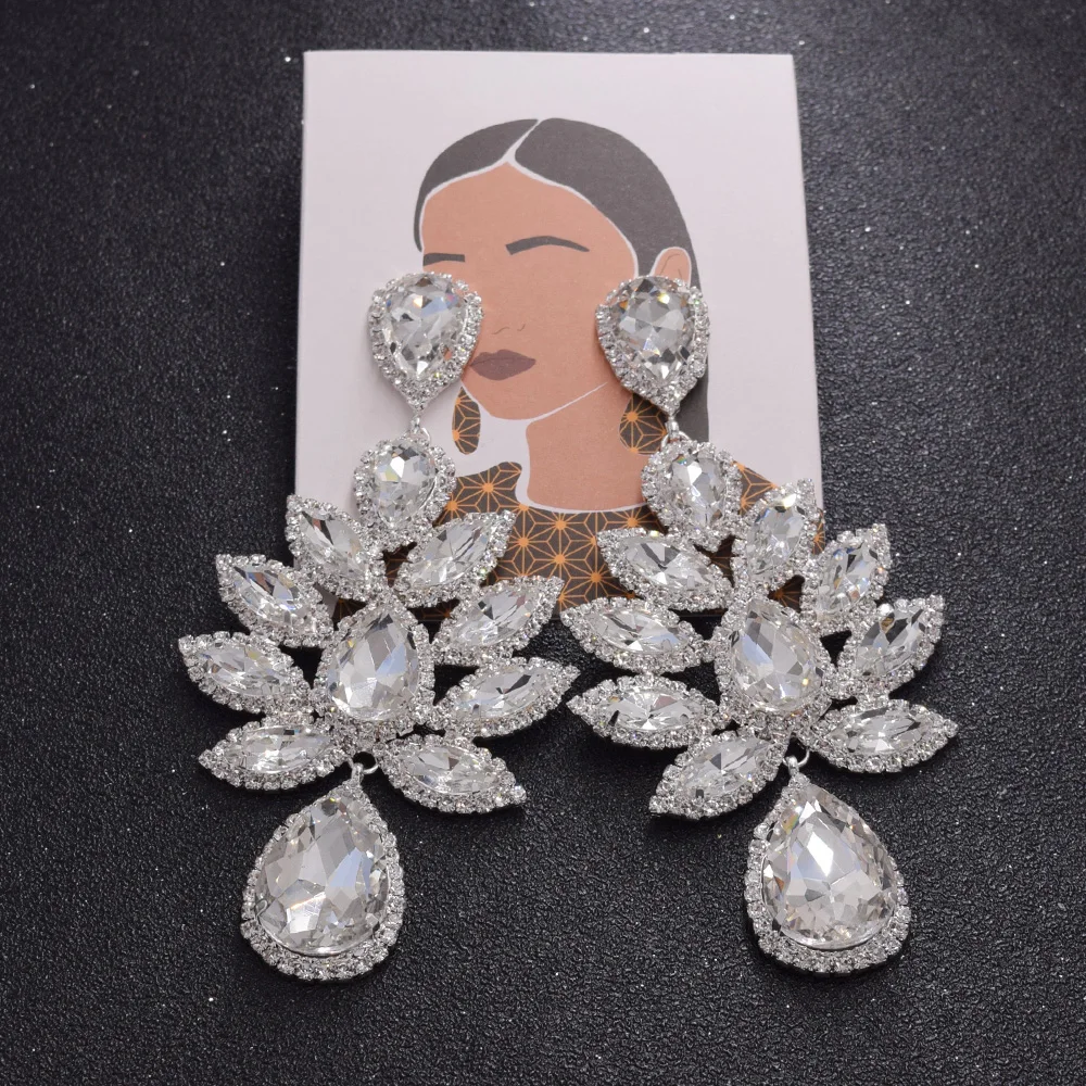 Женские роскошные серьги-подвески с кристаллами, большие размеры, модные стразы, эффектные серьги, свадебные ювелирные изделия