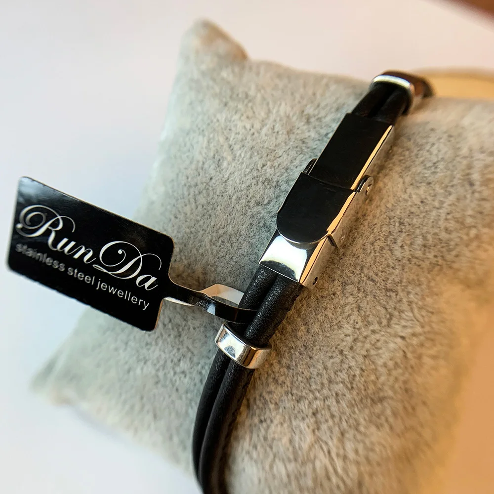 Браслет Runda мужской из черной кожи, Регулируемый аксессуар из нержавеющей стали, 6 мм, анкерное плетение, хороший подарок для мужчин