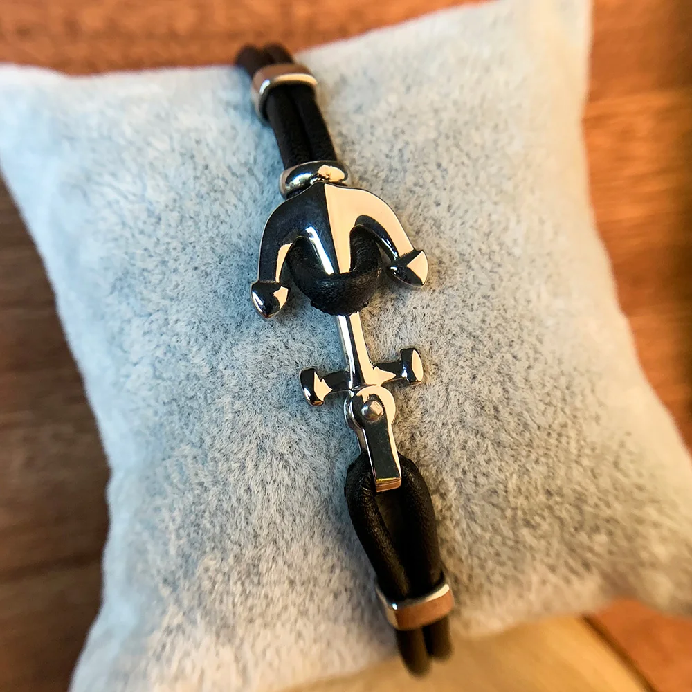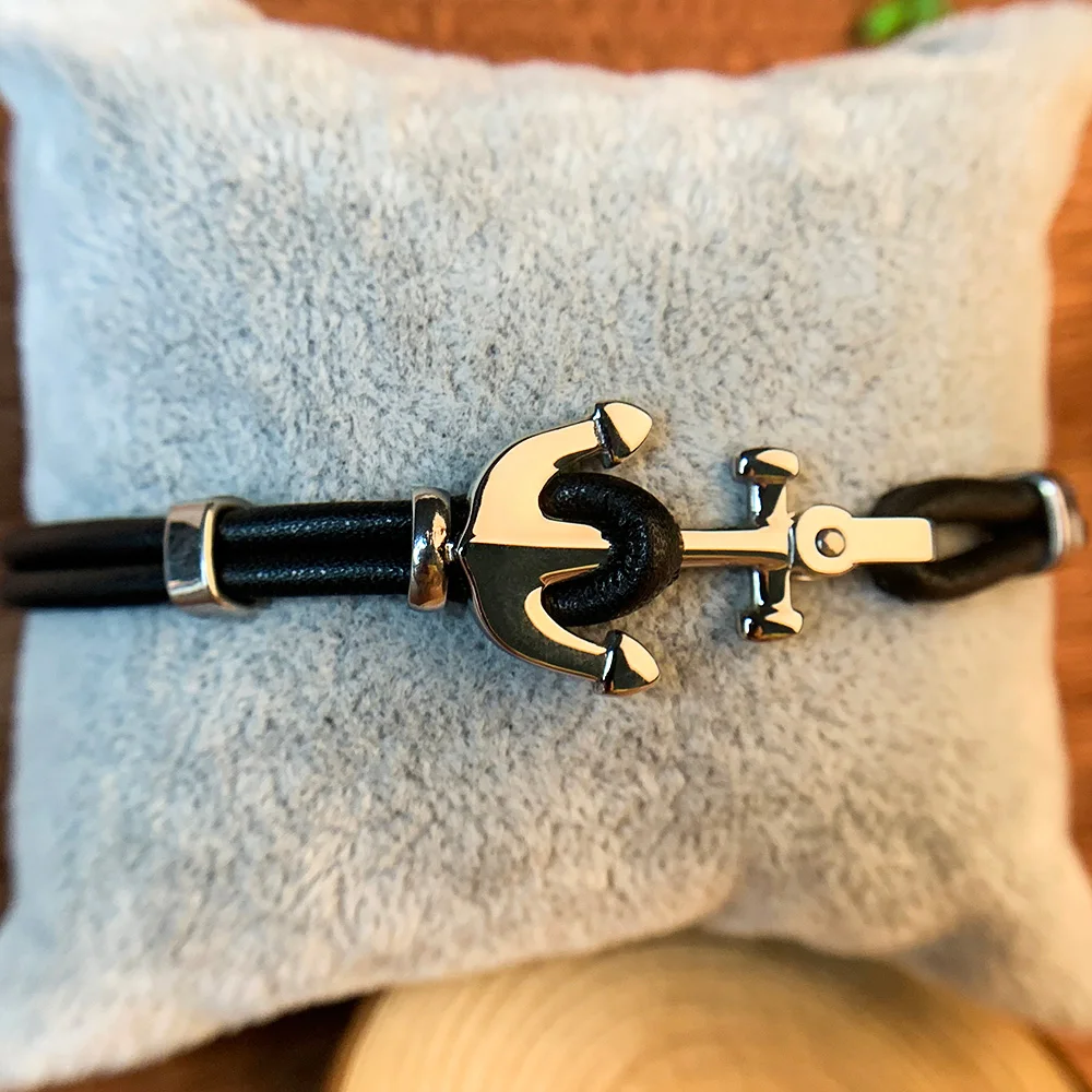 Шикарный браслетик. Заказала на подарок мужу. Рука 18 см у него, впритык. Хотелось бы по больше наверное. Но качество на 5. Сделан аккуратно, кожа пошита качественно, очень мягкая. Якорь тоже интересно сделан. Замочек такой ещё не встречала, но очень удобно использовать. Пришёл в красивой синей коробке. Рекомендую магазин.