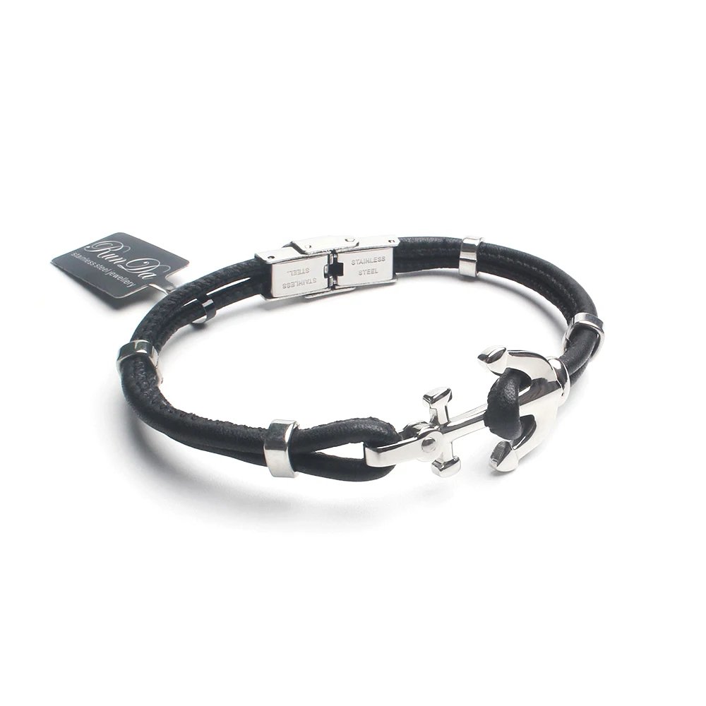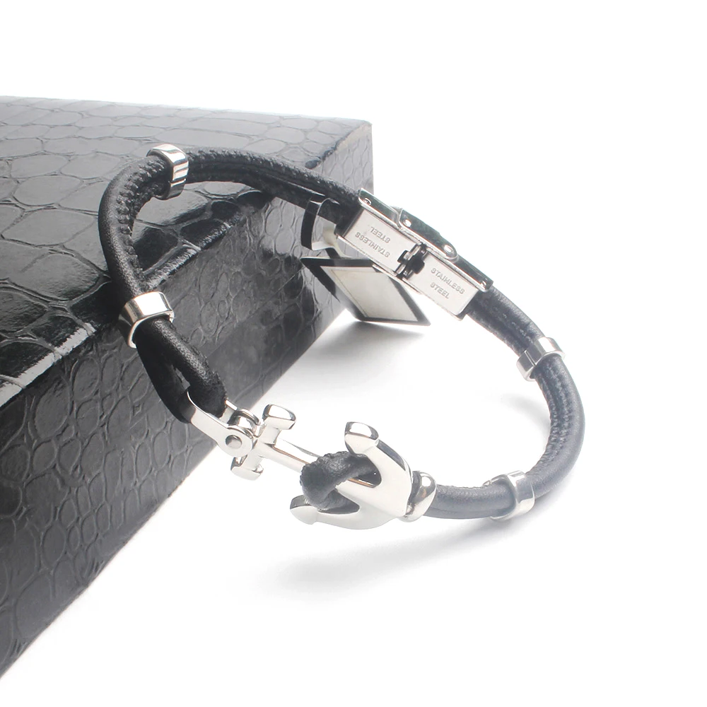 Runda мужской черный кожаный браслет 6 мм регулируемый аксессуары из нержавеющей стали якорь плетение ювелирные изделия для мужчин подарок