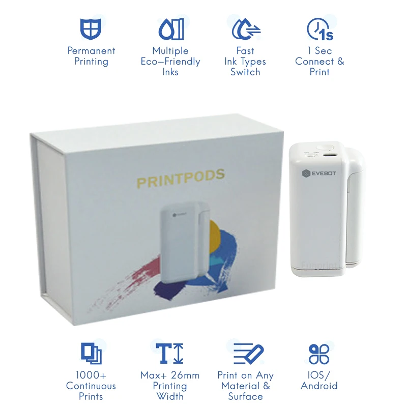 Половину размера, но превосходный Срок службы батареи стоит на месте! Передовая технология аккумулятора printpods позволяет достичь каждой из ваших идей с более чем 1000 непрерывных отпечатков. Мечты никогда не сбываются, как и принтподс!