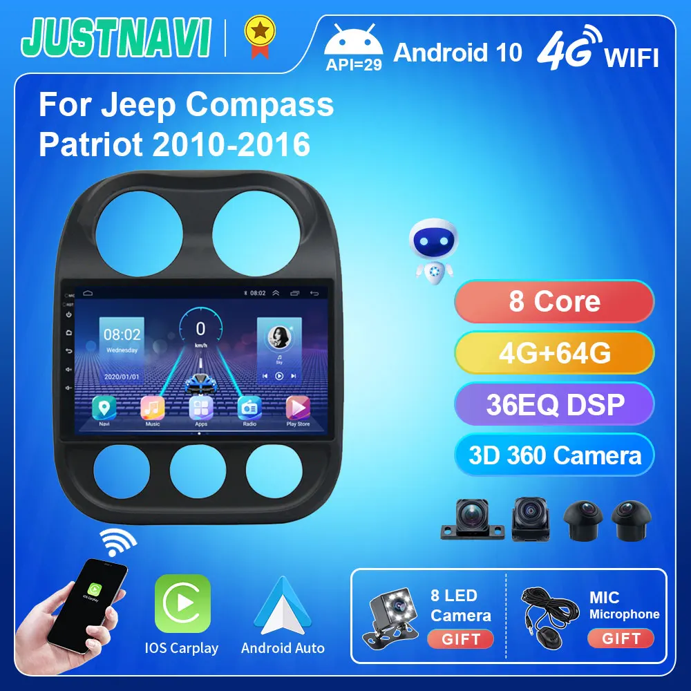 Автомобильный радиоприемник JUSTNAVI QT5 для Jeep Compass Patriot 2010-2016, стерео приемник, навигация GPS, 10 дюймов, 4 ГБ, 64 ГБ, Автомобильный плеер, DVD, Android 10