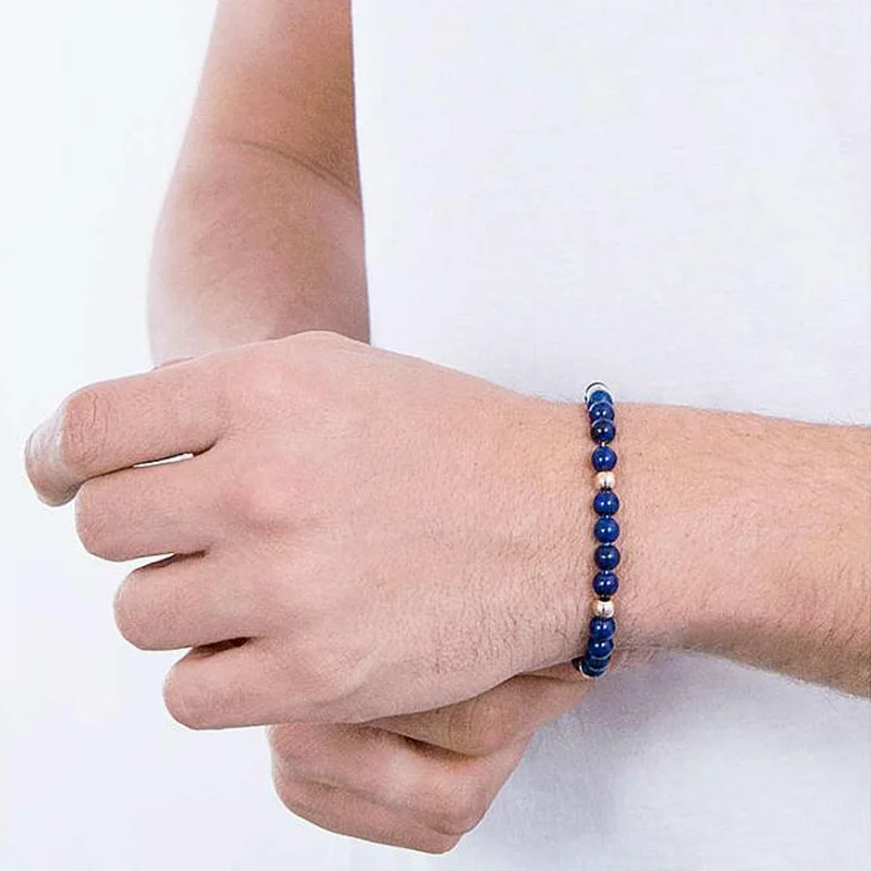 Мужские и женские браслет Runda из натурального камня 6 мм, браслет из кианита обсидиана, бусы из нержавеющей стали, ювелирные изделия ручной работы для пары, подарок