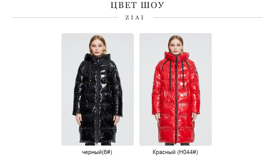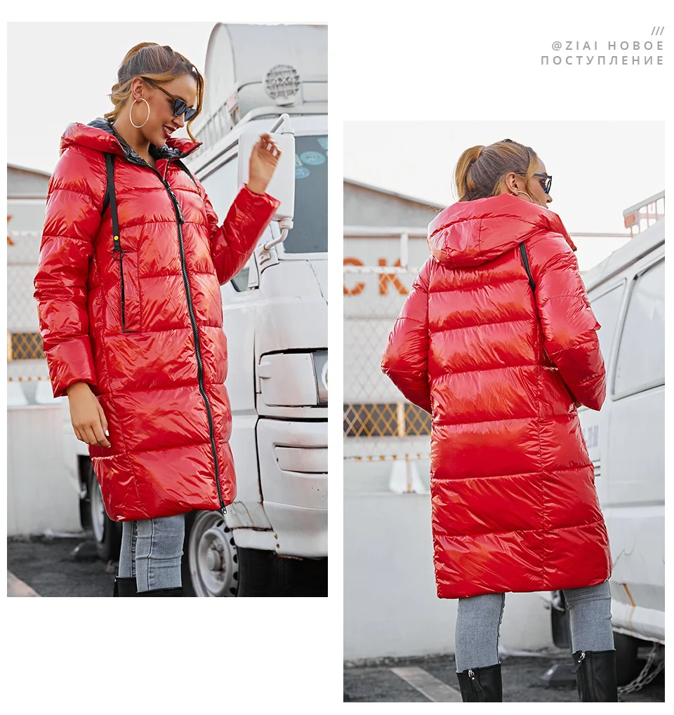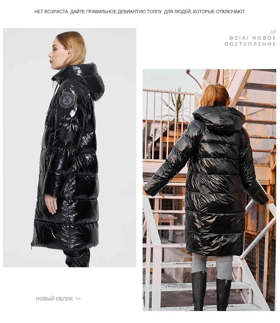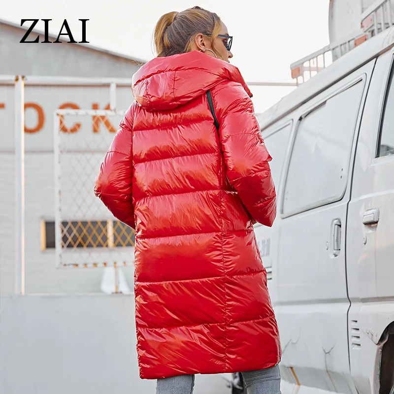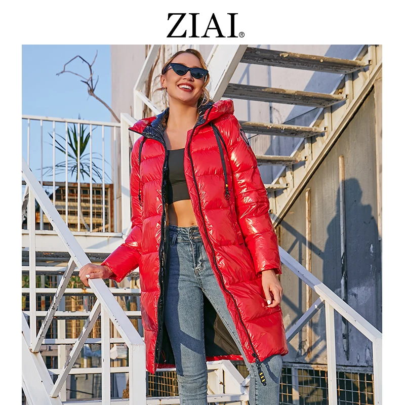 Зимнее женское пальто ZIAI, длинное теплое пальто из хлопка, яркая куртка с двойной молнией и капюшоном, 2021