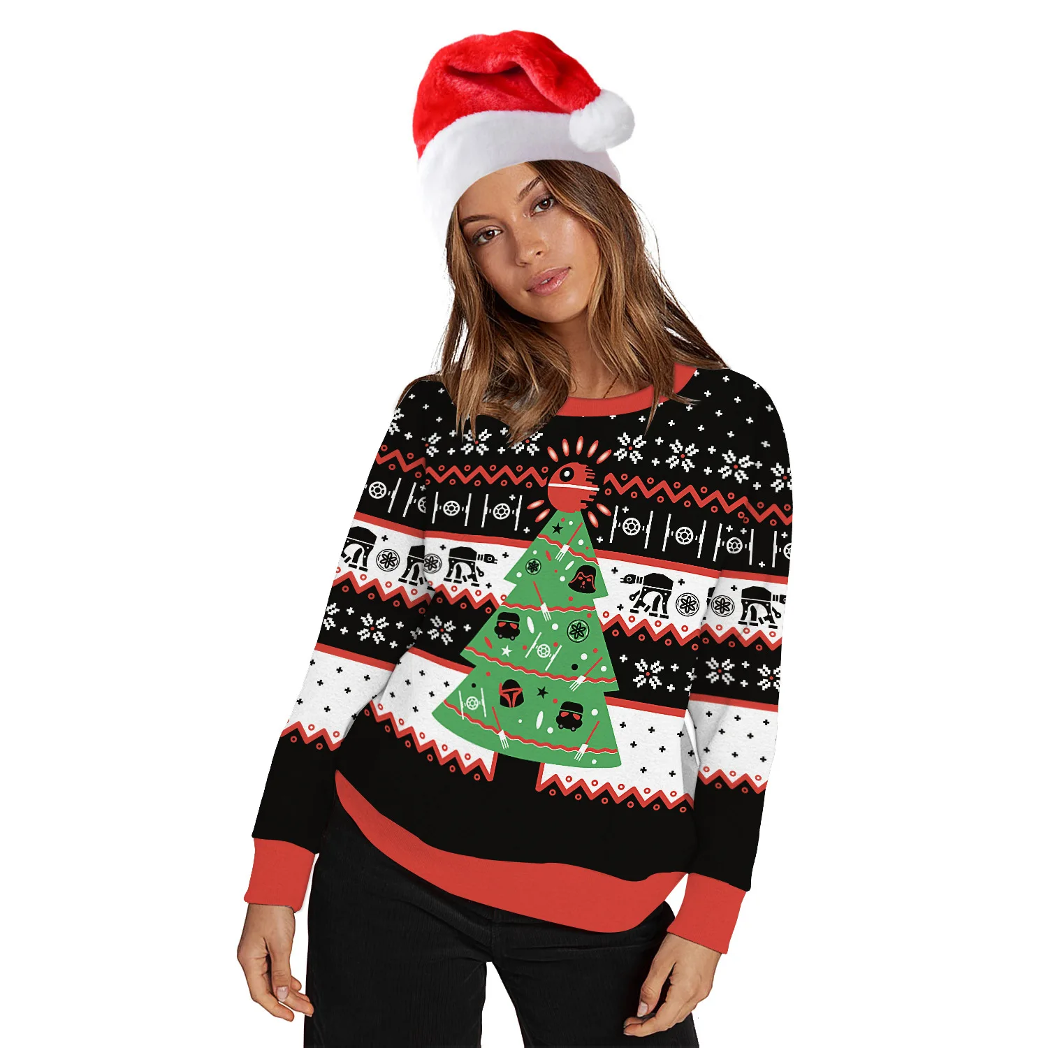 Новый Уродливый Рождественский свитер с 3D принтом, Забавный Рождественский пуловер с круглым вырезом, Свитера для пар, модели осенне-зимнего стандартного свитера