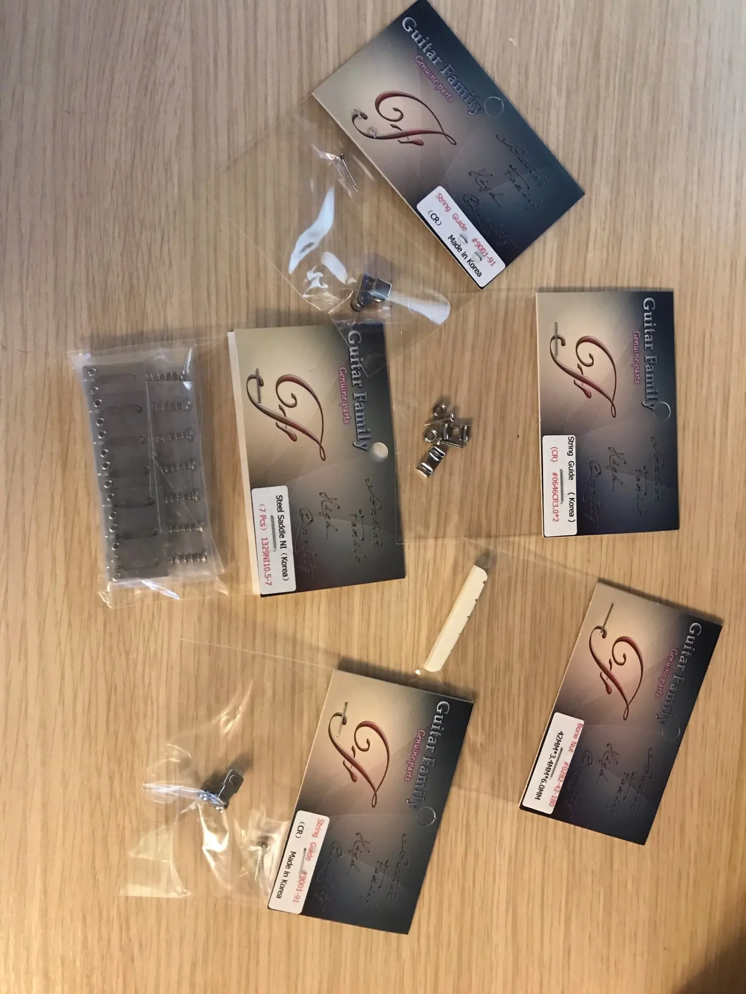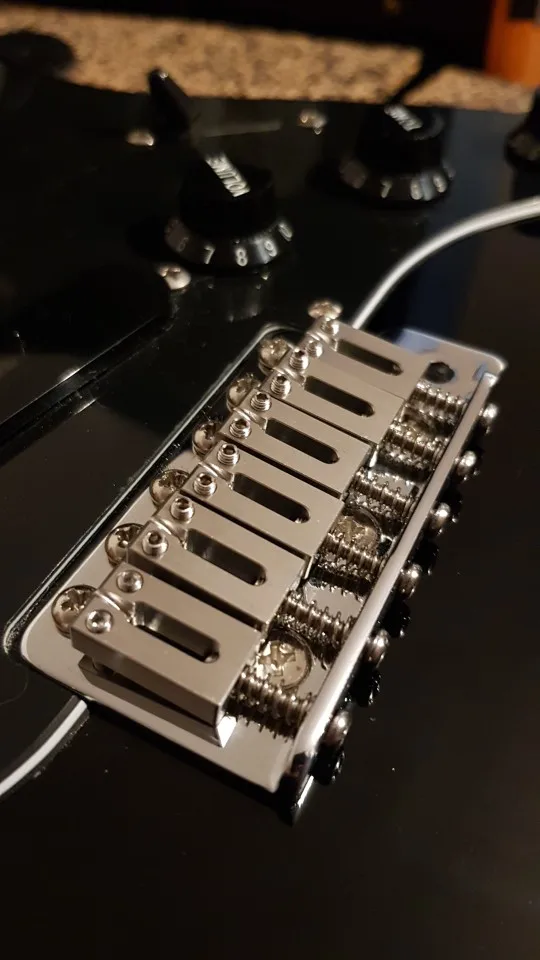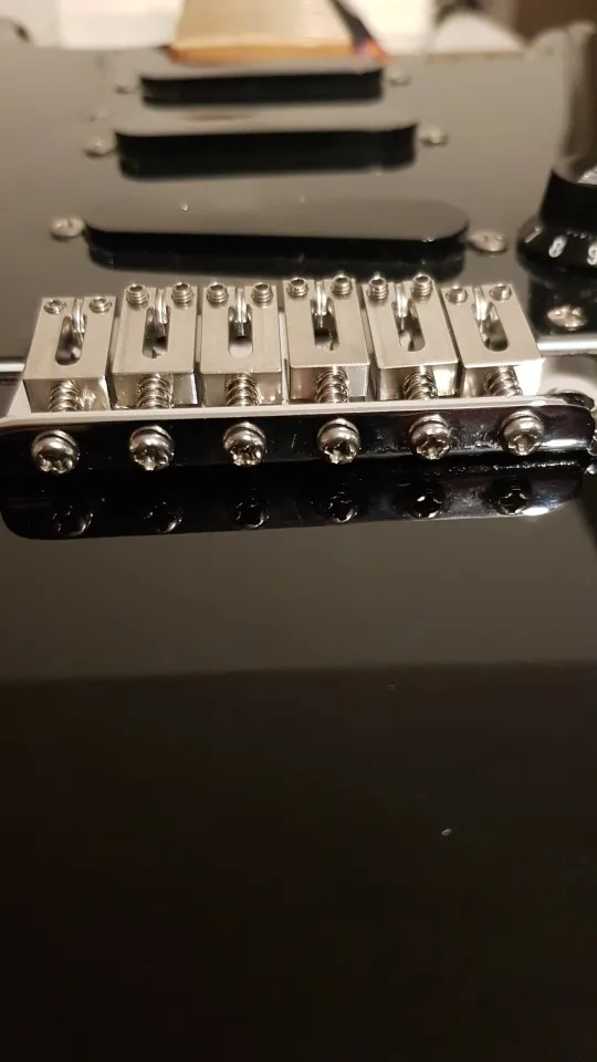Nice solid feel. intend to fit on my yamaha pacifica. only need 6, bought 7 just in case. height adjustment screw lengths are in mm: 10, 10, 10, 9.7, 9.6, 7.6, 7.8 I was not expecting the different heights - I need to read the description better next time. the intonation screws all turn nicely in the block. height adjustment screws turn smoothly in 4 bridge pieces. in the remaining 3 pieces, the height adjustment screw cannot turn. unexpected and disappointed... and I am outside the 15 day dispute/return period. I have marked with a red dot on one block where the screw thread has metal overhang which stops the screw turning. a tap/die set would clean the thread. i have dropped stars for this reason... when I started my review I was oh well, three need to be fixed... now I am annoyed with myself for not checking properly when I received. I will either spend more money on a tap and die set or another set of bridges. shipping 16 days to UK with combined shipping.