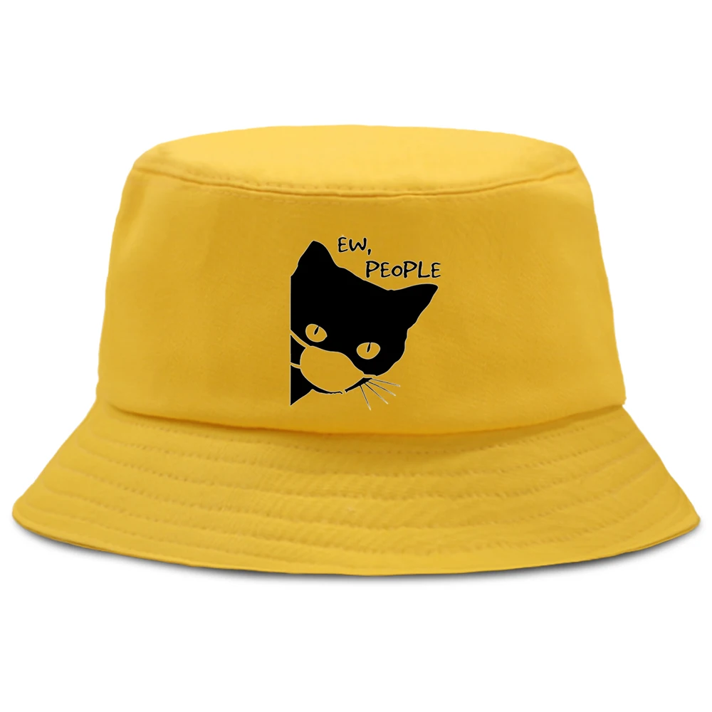 Панама в стиле хип-хоп для мужчин и женщин, модная пляжная шляпа с принтом большого черного кота, с индивидуальным принтом, от солнца, для рыбалки