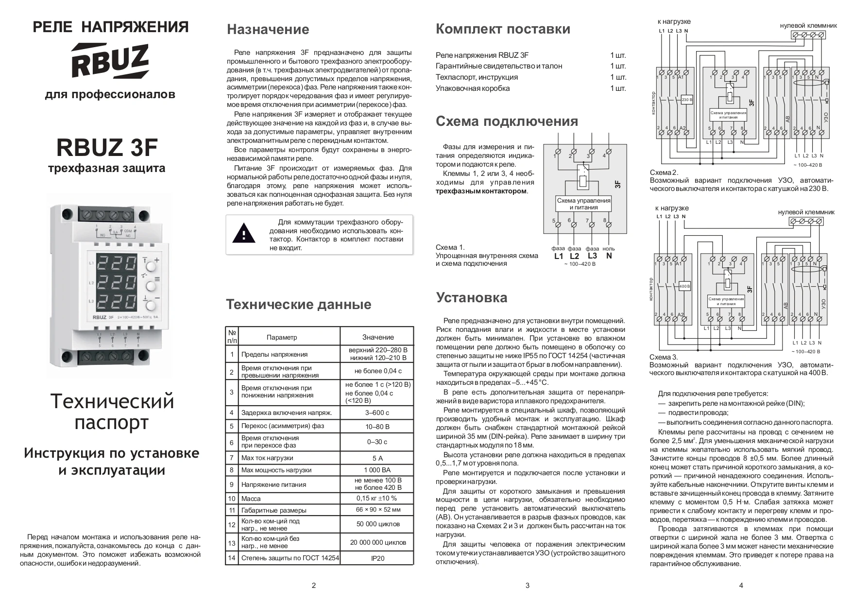Технические характеристики RBUZ 3F