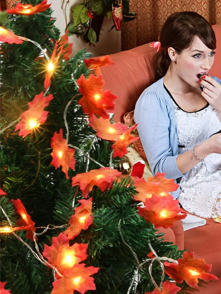 Новые осенние украшения 1020 искусственная светодиодная гирлянда в осенними листьями кленовые листья осень гирлянда светильник Декор на Хеллоуин и Рождество