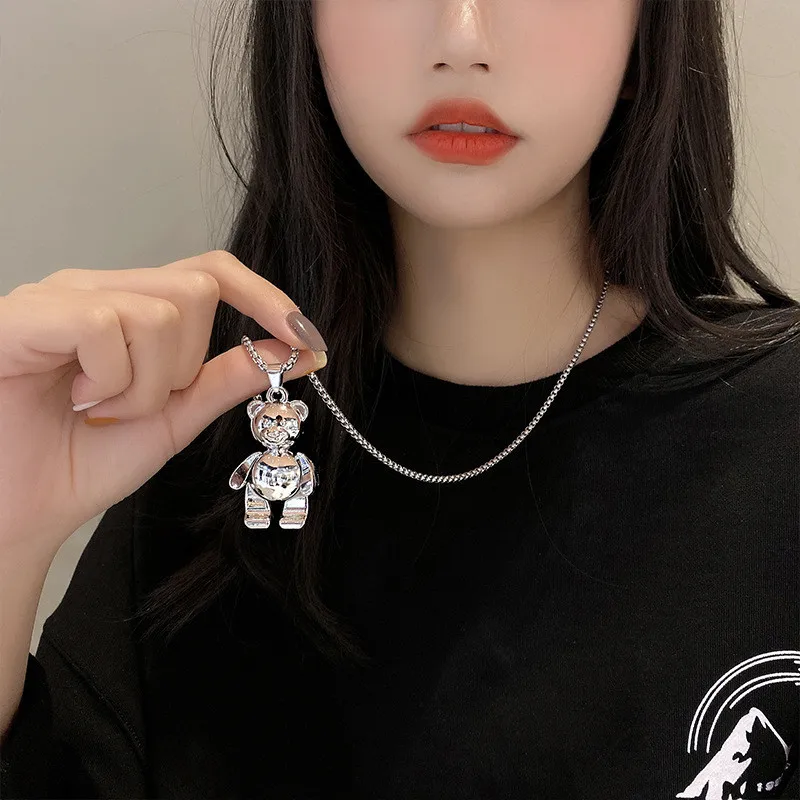 Ожерелье из сплава в стиле панк для мужчин и женщин, украшение в готическом стиле, плюшевый мишка, цепь на свитер, стиле K-POP, хип-хоп, 2021