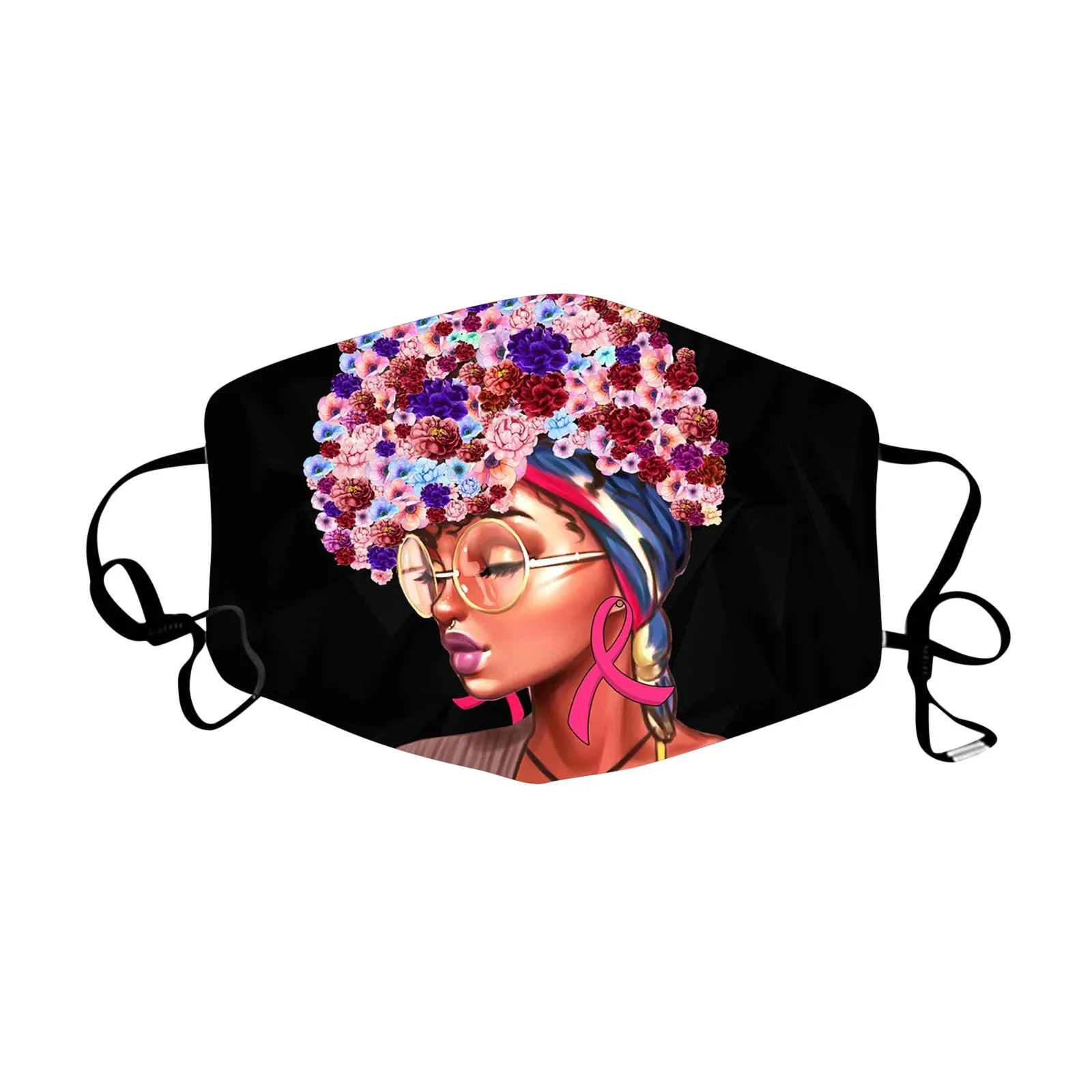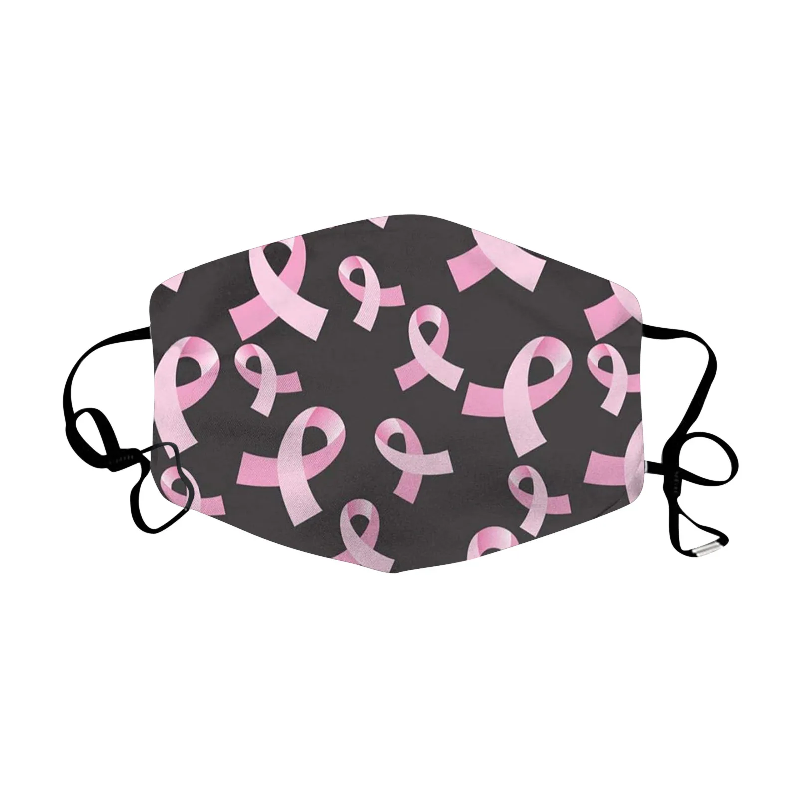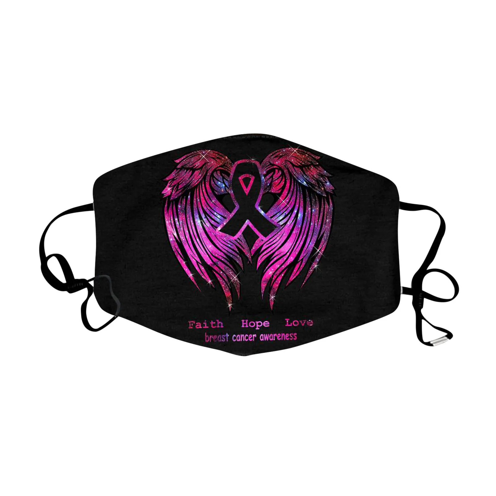 Маска женская многоразовая ветрозащитная с принтом и розовой лентой