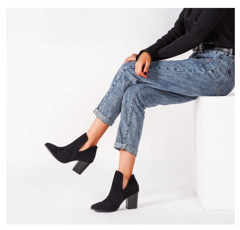 Женские замшевые ботинки JIANBUDAN, короткие ботинки на высоком каблуке, Осенние удобные ботинки челси, размеры 36-43