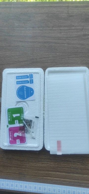 Стекло пришло в пенопластовом боксе. продавец положил 2 пары салфеток. На смартфон село идеально. Стекло не на весь экран, по краям отступ легко 1 — 1,5 мм. Но я такое и искала. С глубоким чехлом просто великолепно. Рекомендую!