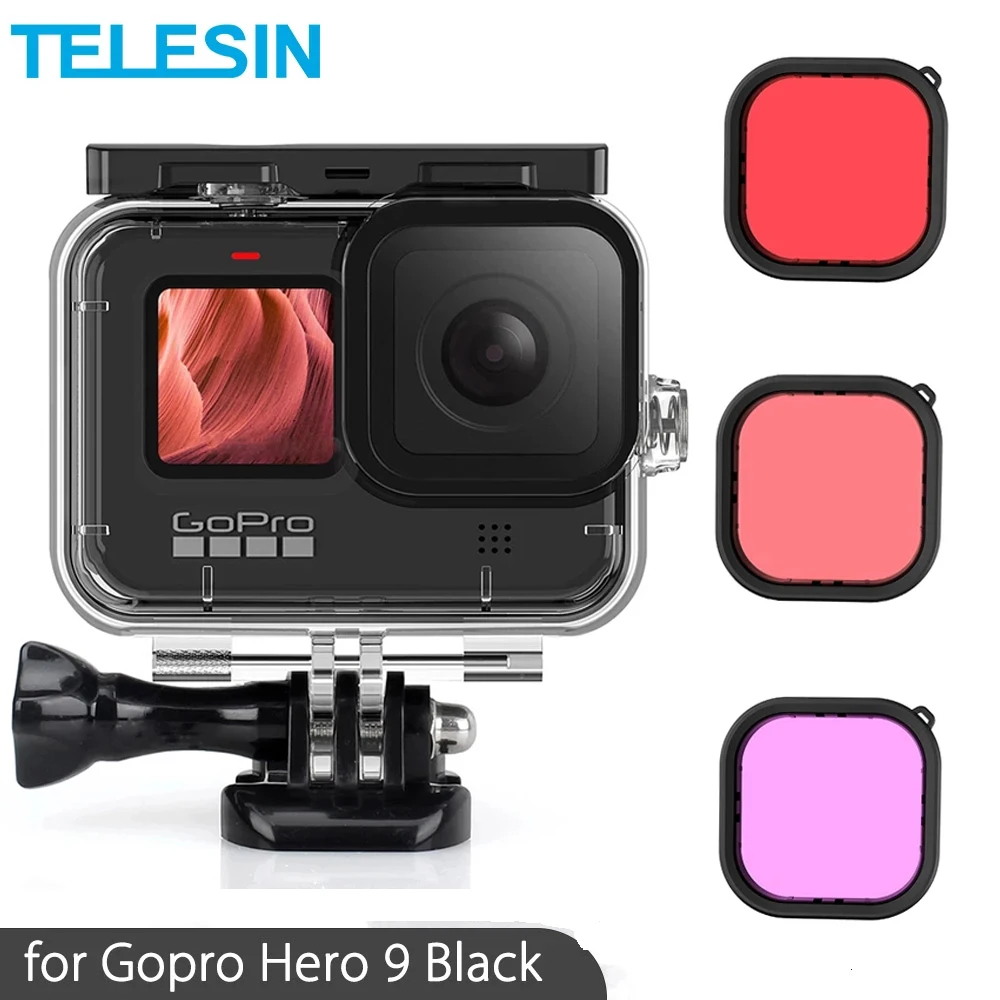 1. Водонепроницаемость до 164фт/50 м. Обеспечивает максимальную четкость изображения выше и под водой.2. С этим водонепроницаемым корпусом вы можете идеально использовать камеру 50 м под водой; Водонепроницаемое покрытие против серфинга не повлияет на ваше движение и фотографический эффект;3. Линзы сделаны из высокоорганического закаленного стекла, могут поддерживать хорошую фотосъемку;4. Подходит для GoPro Hero 9 10 черной камеры.5. Простота установки не нужно разбирать Дизайн объектива делает его более удобным в использовании водонепроницаемый чехол6. Компакт-диск с защитой от отпечатков пальцев Дизайн: Навигация специальный материал из нержавеющей стали 316, широкая головка кнопки, увеличьте площадь контакта между водонепроницаемой кнопкой чехол и кнопкой камеры, Защитите кнопку камеры.7.Magenta,fuchsine и фиолетовый фильтр для объектива можно использовать на глубине 5 м-25 м и может исправить отклонение цвета в различном качестве воды.