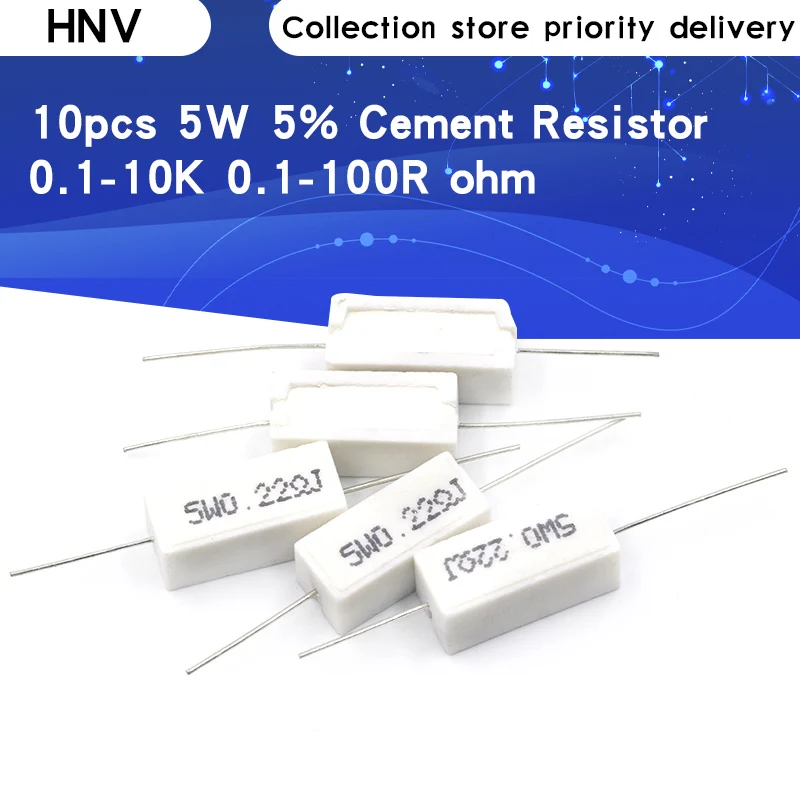 Цементный резистор 5 Вт 5%, сопротивление мощности 0,1 10K 0.1R 0.5R 1R 10R 100R 0,22 0,33 0,5 1 2 5 8 10 15 20 25 30 100 1K 10 кОм, 10 шт.