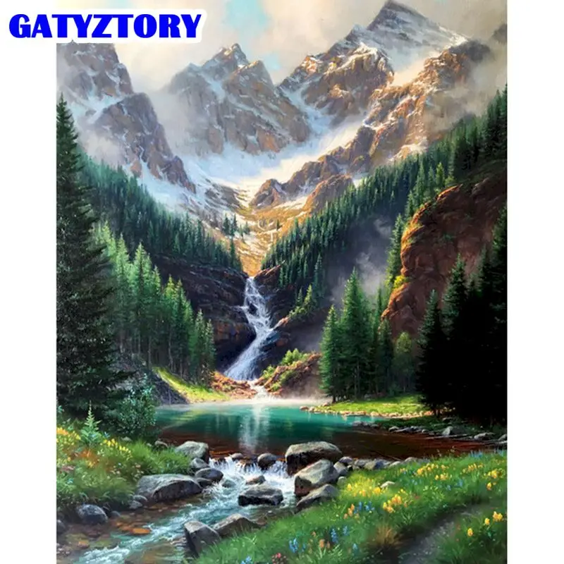 GATYZTORY снег Горный пейзаж краска по номерам 40x50 см в рамке Масляная картина ручная краска ed акриловая нарисованная на холсте настенная работа icon star icon star icon star icon star icon star