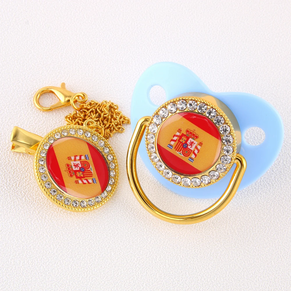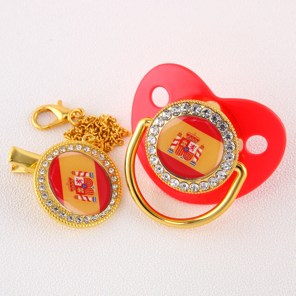 Соска-пустышка с испанским флагом для новорожденных, Роскошная детская пустышка с зажимом-цепочкой, Espanola