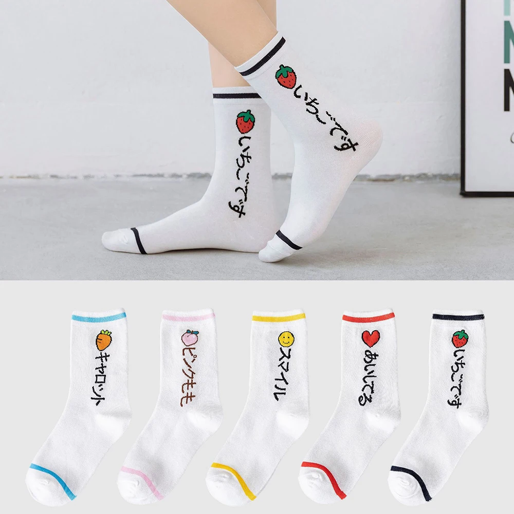 Носки женские, осенне-зимние, в стиле Харадзюку, 5 пар