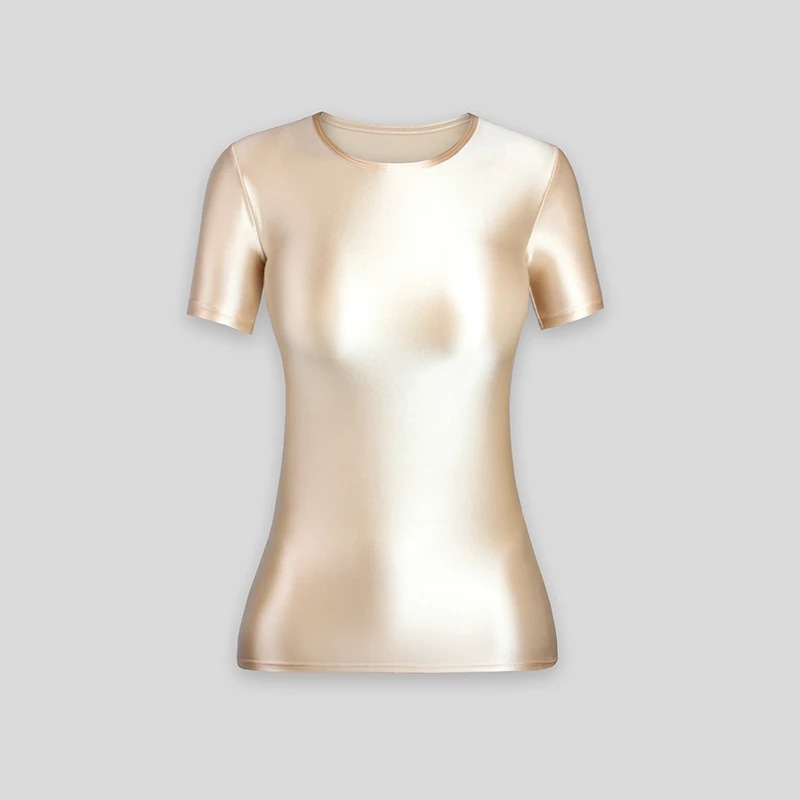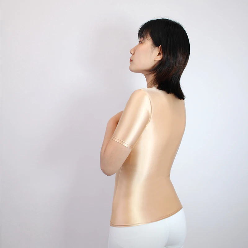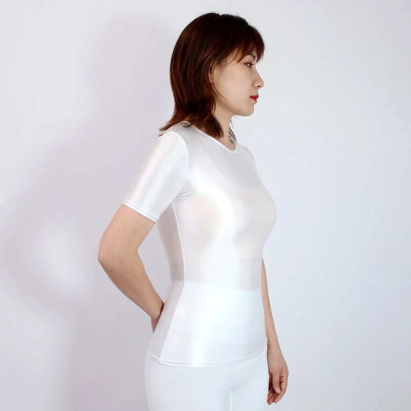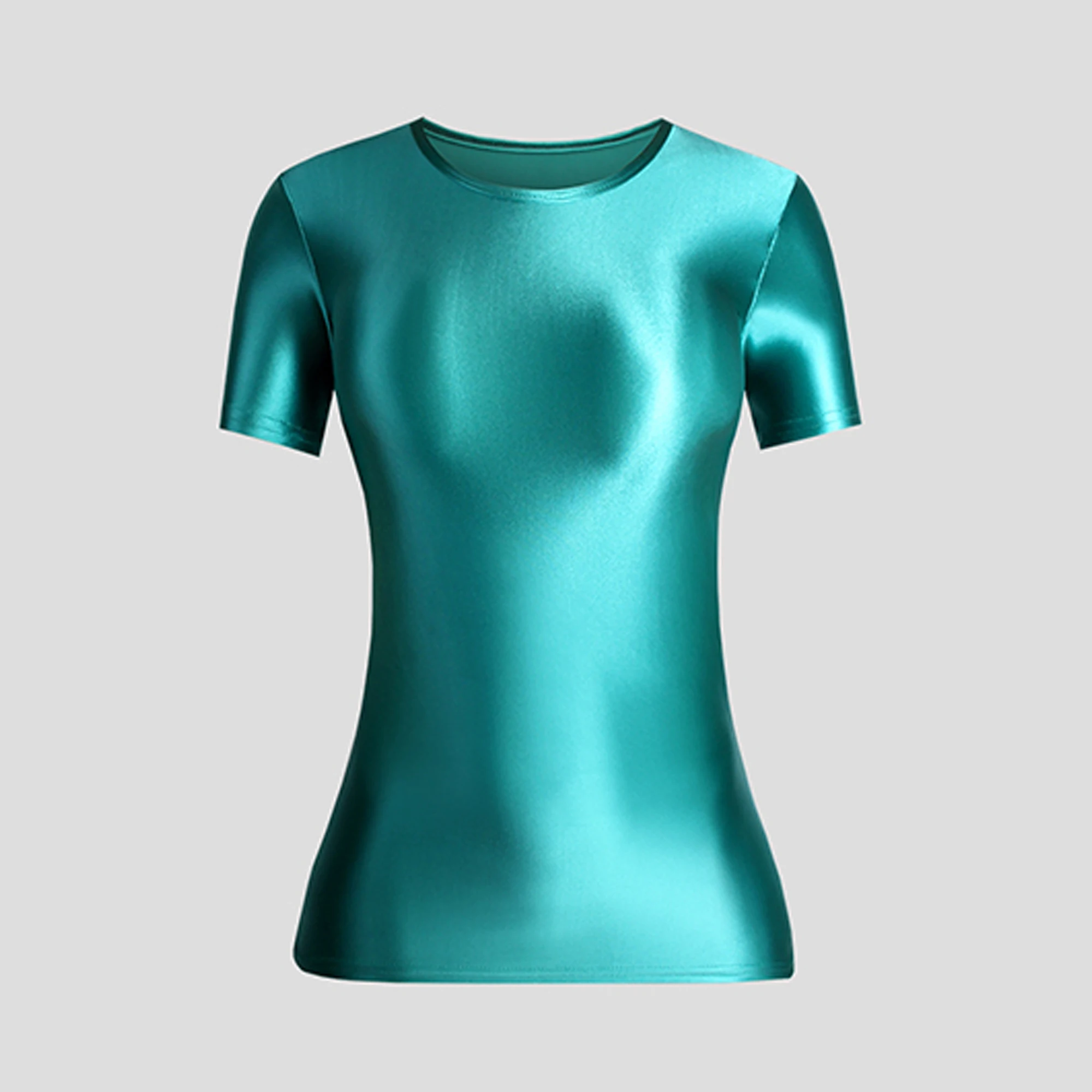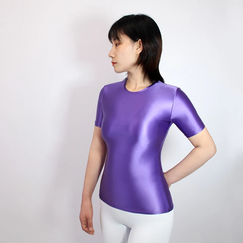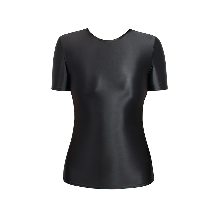 Глянцевая Спортивная рубашка с коротким рукавом обтягивающий Гладки...