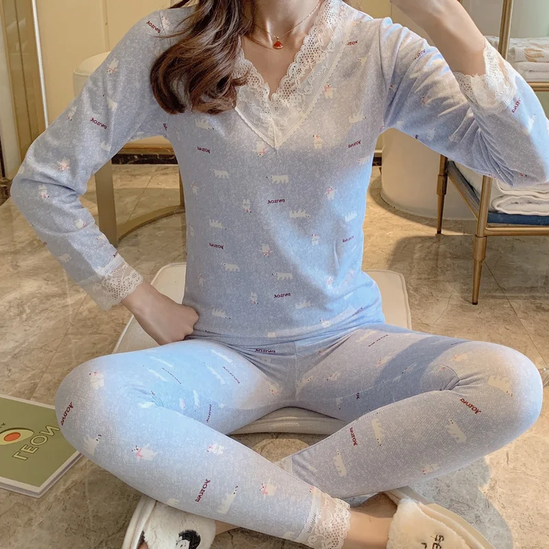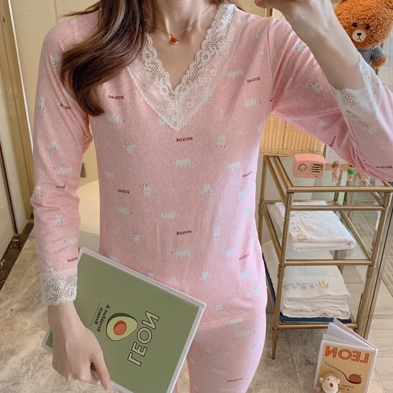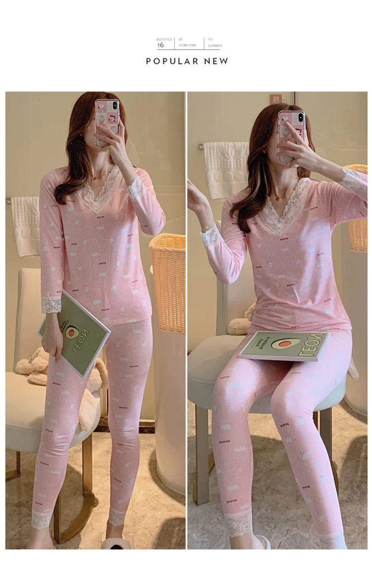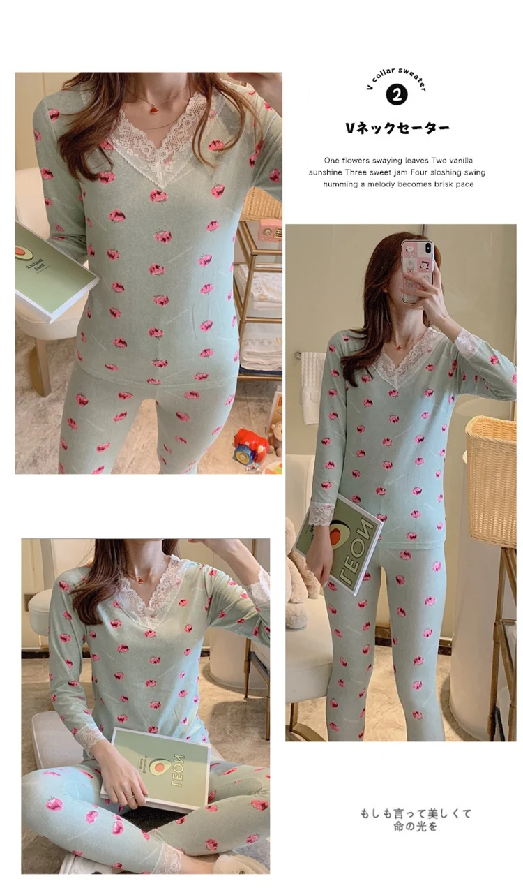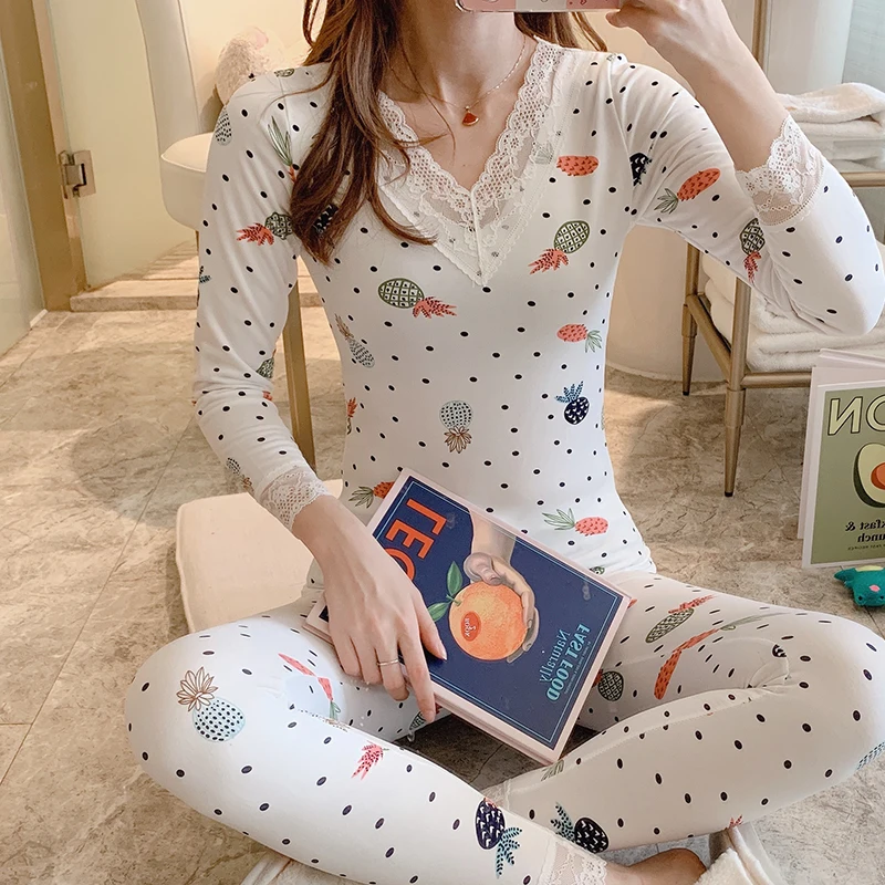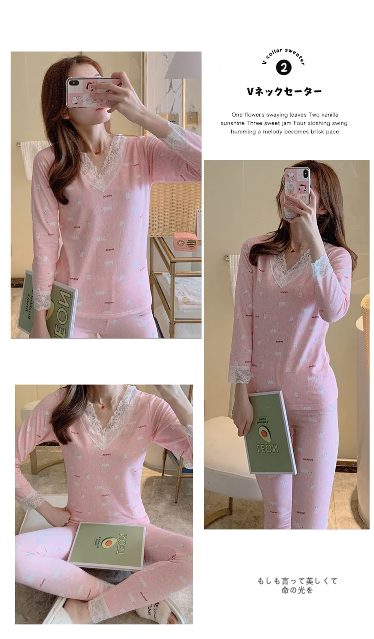 Комплект нижнего белья женский, кружевной, с V-образным вырезом и длинным рукавом, Осень-зима 2020