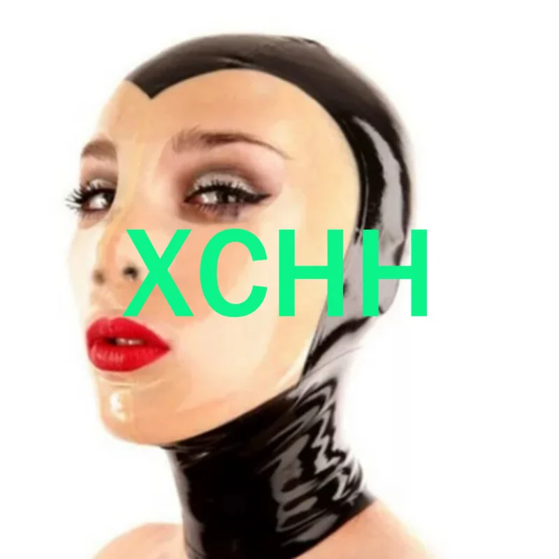 Чистый 100% натуральный латекс женская маска капюшон с открытым гла...