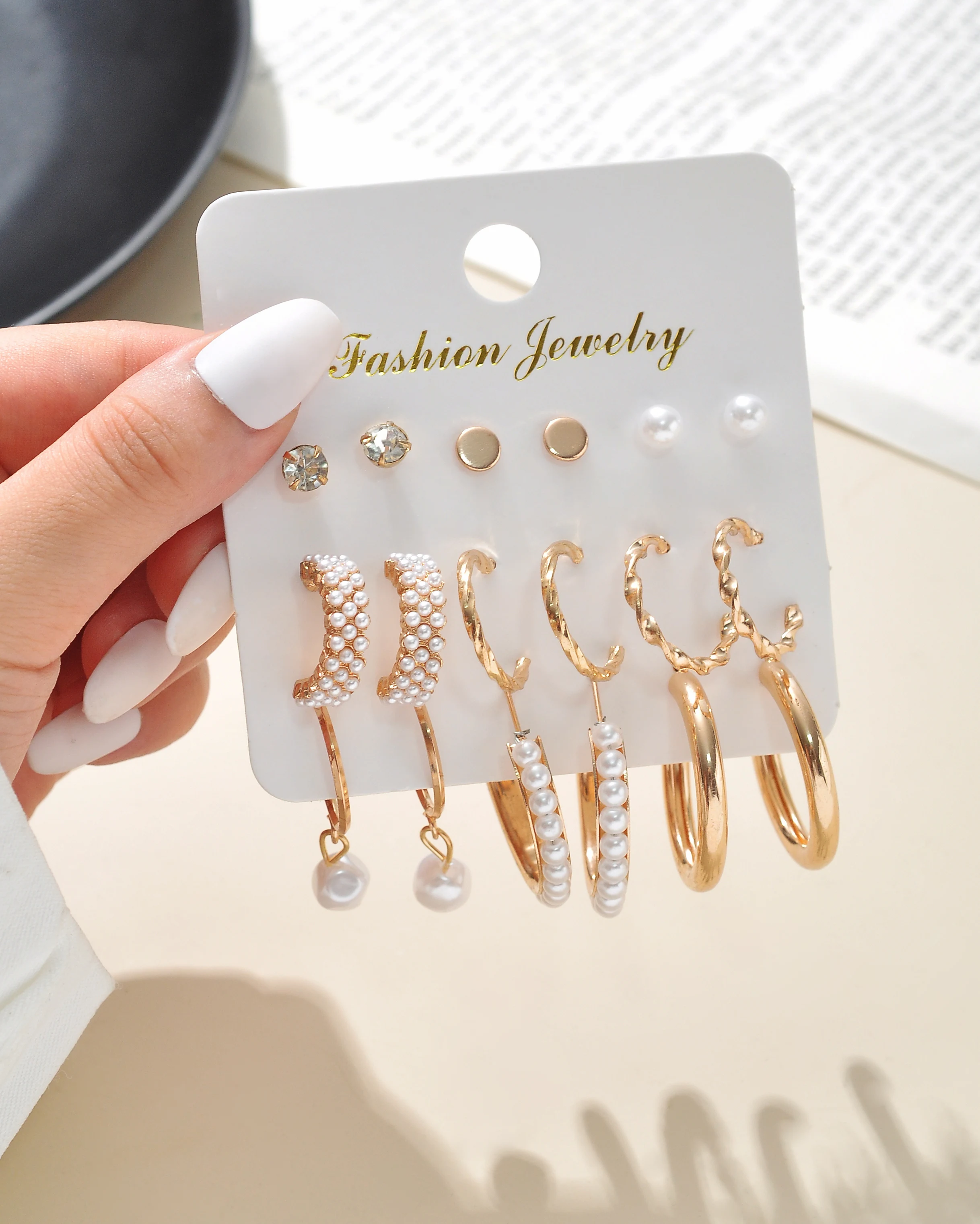 12 9 парыкомпл. женские серьги-гвоздики с жемчугом и кристаллами дл...