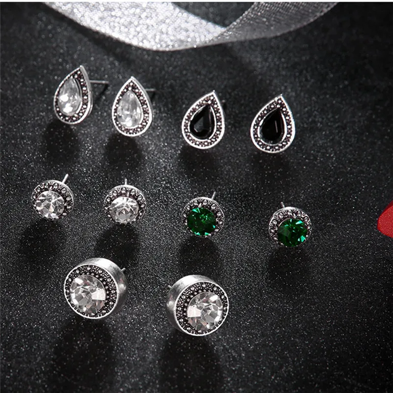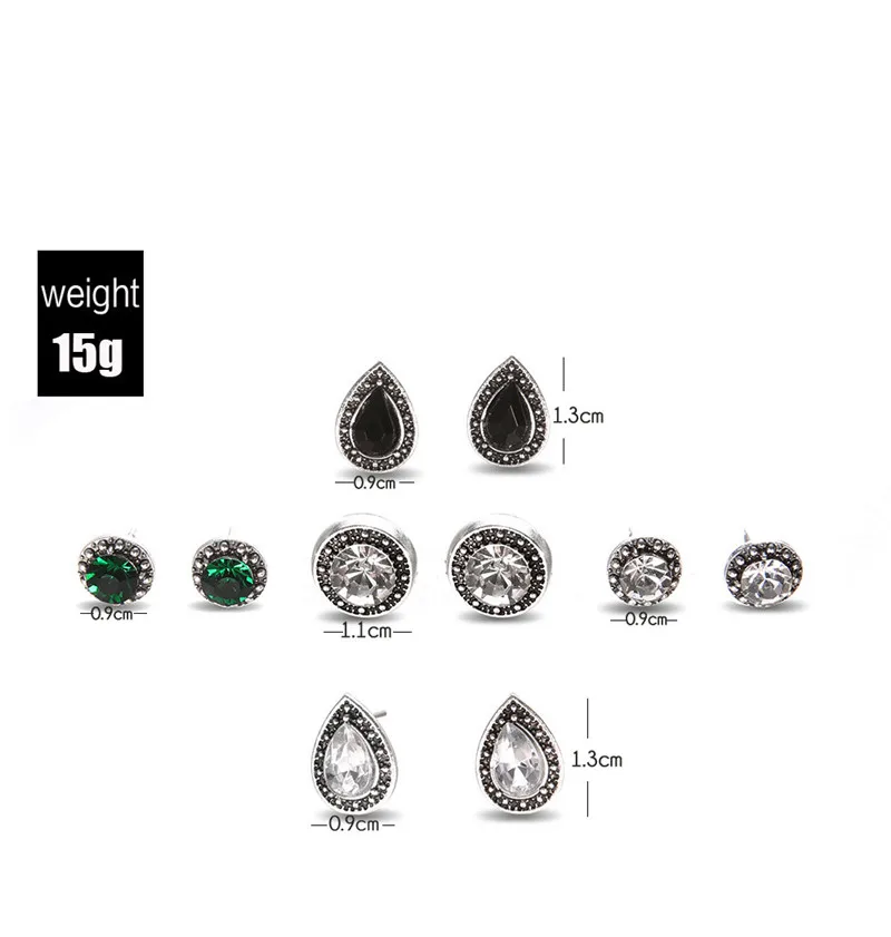 5 паруп. Boho смешанные в стиле ретро маленькие серьги набор блестящие хрустальные капли воды геометрические серьги-гвоздики для женщин и девочек-пуссеты