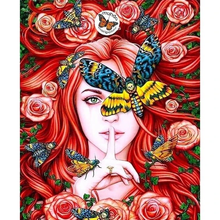 Pattern TypeMoth, butterfly, rose, redhead girl