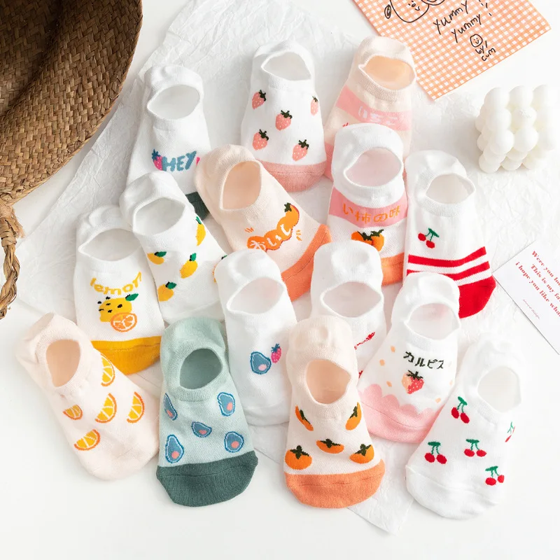 Носки PEONFLY женские, хлопок, Нескользящие, с принтом смешных фрук...