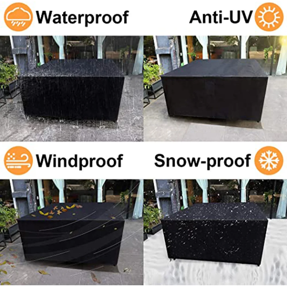 Водонепроницаемый чехол для садовой мебели, чехлы для дивана, стола, сада, внутреннего дворика, от дождя, снега, Пыленепроницаемый Чехол, 66 черного и серебристого цвета