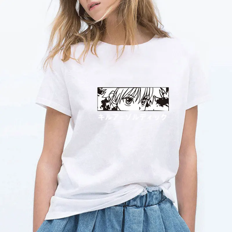 Футболка Hunter X Hunter Killua Eyes женская, модный топ с круглым вырезом и коротким рукавом, из хлопка, в стиле аниме, индивидуальная одежда, на лето