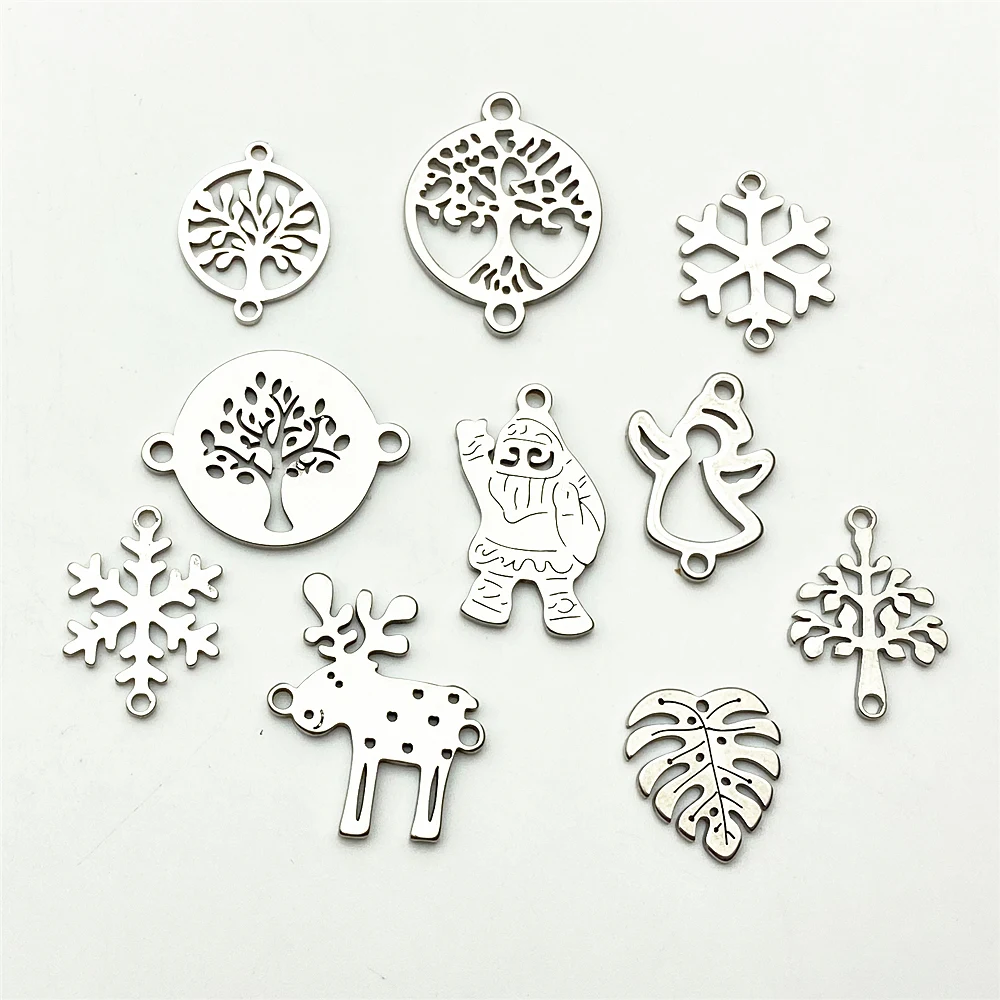Микс Снежинка любовь Рождество Лось Шарм большое дерево соединитель 5 шт. из нержавеющей стали подходят для браслетов соединители ручной работы Diy ювелирные изделия