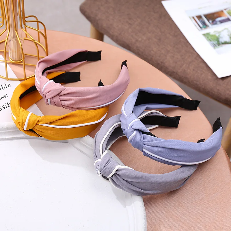 Ободок с узлом Женский, Модный мягкий однотонный обруч для волос, винтажный аксессуар на голову, FG1011