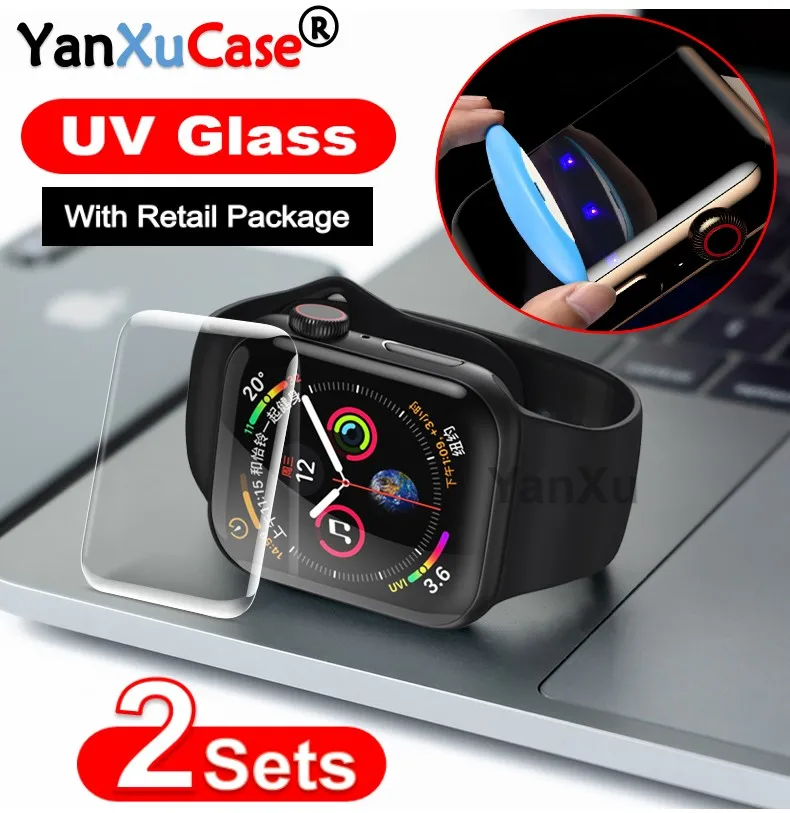 УФ-стекло для Apple Watch Series SE 6 5 4 40 мм 44 мм, защитная пленка с полным наклеиванием для i Watch 3 2 1 42 мм 38 мм, 2 шт.