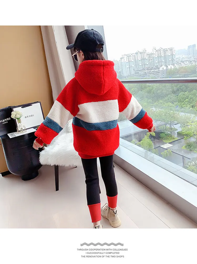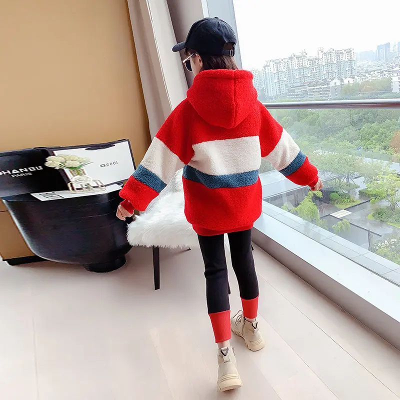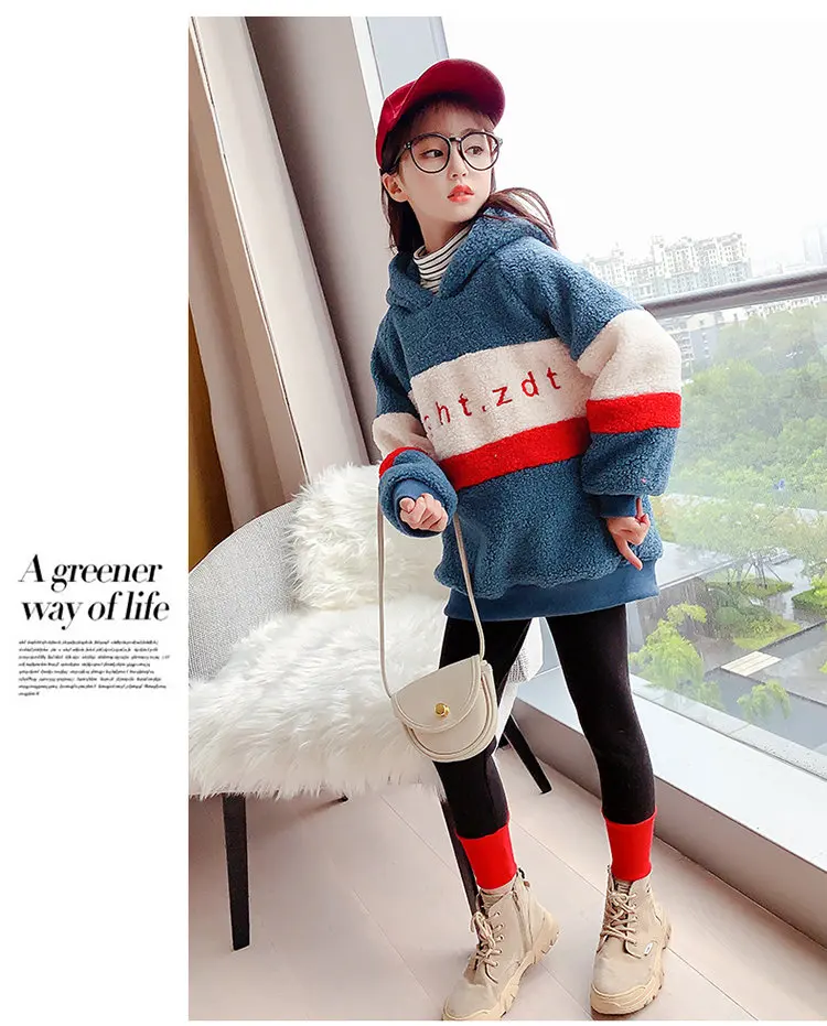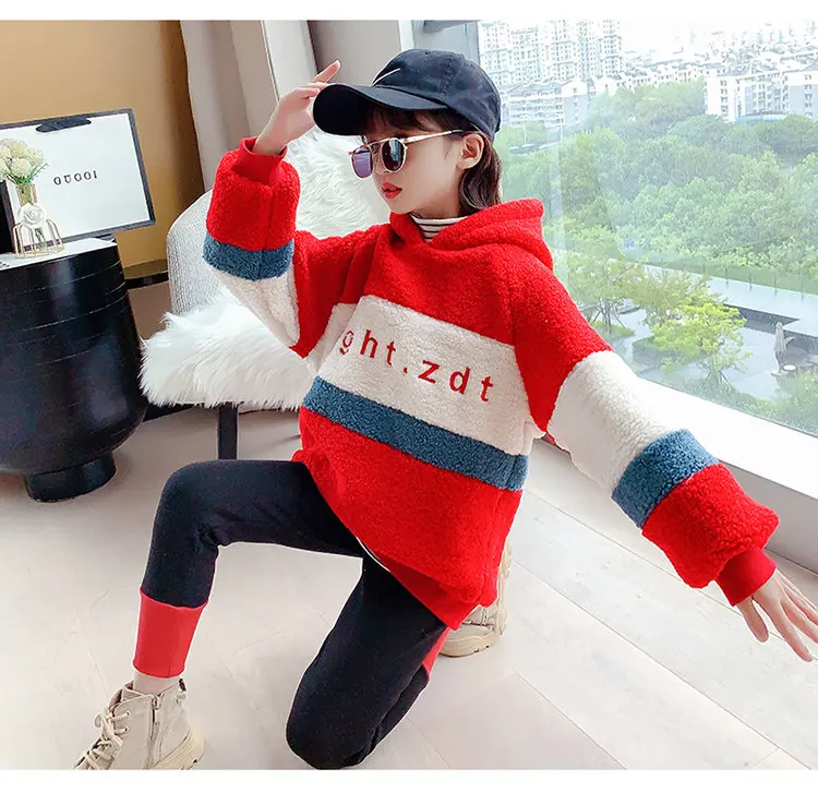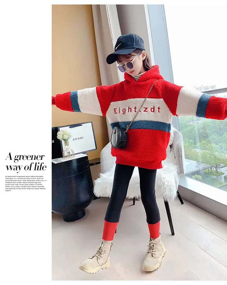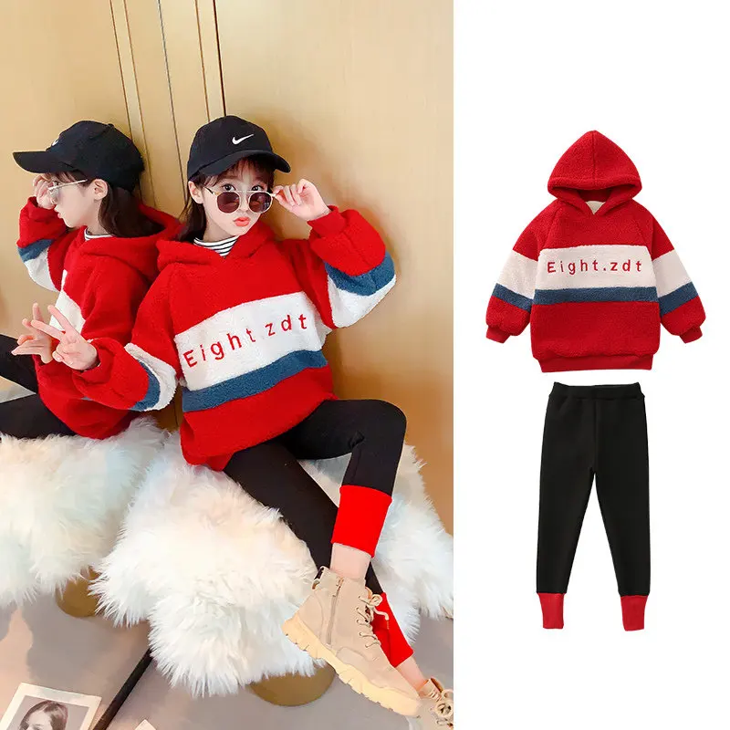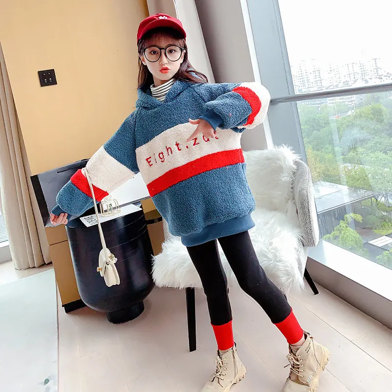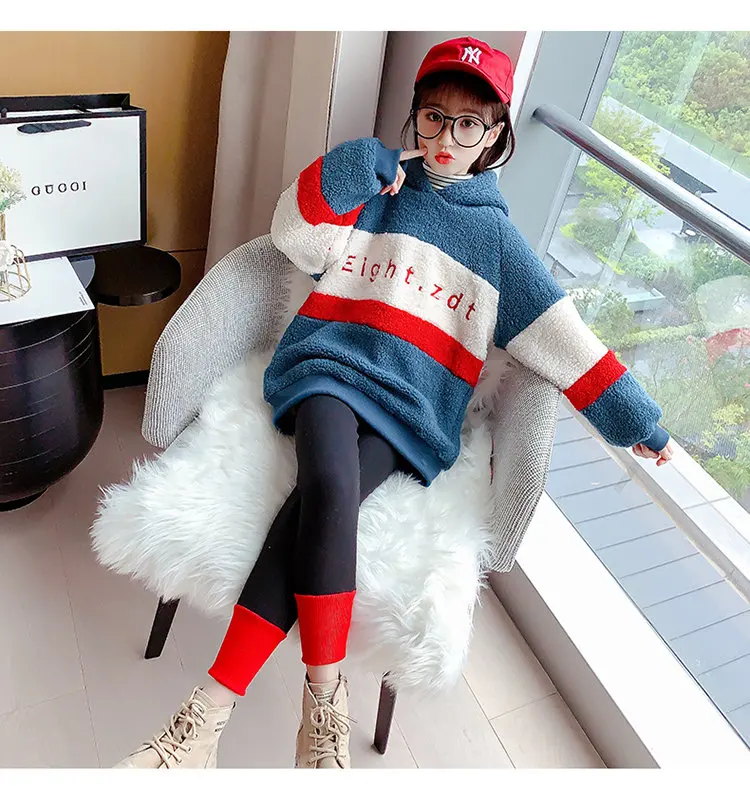 Спортивный костюм для девочек, кофта с капюшоном и леггинсы, теплый комплект одежды для детей 6, 8, 10, 12, 13 лет, Осень-зима