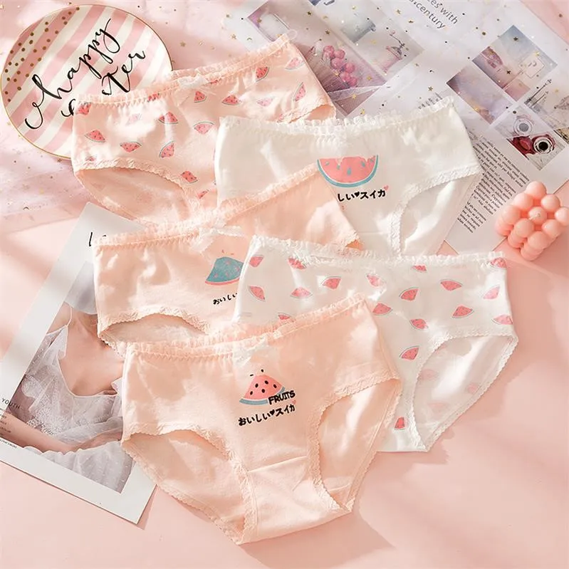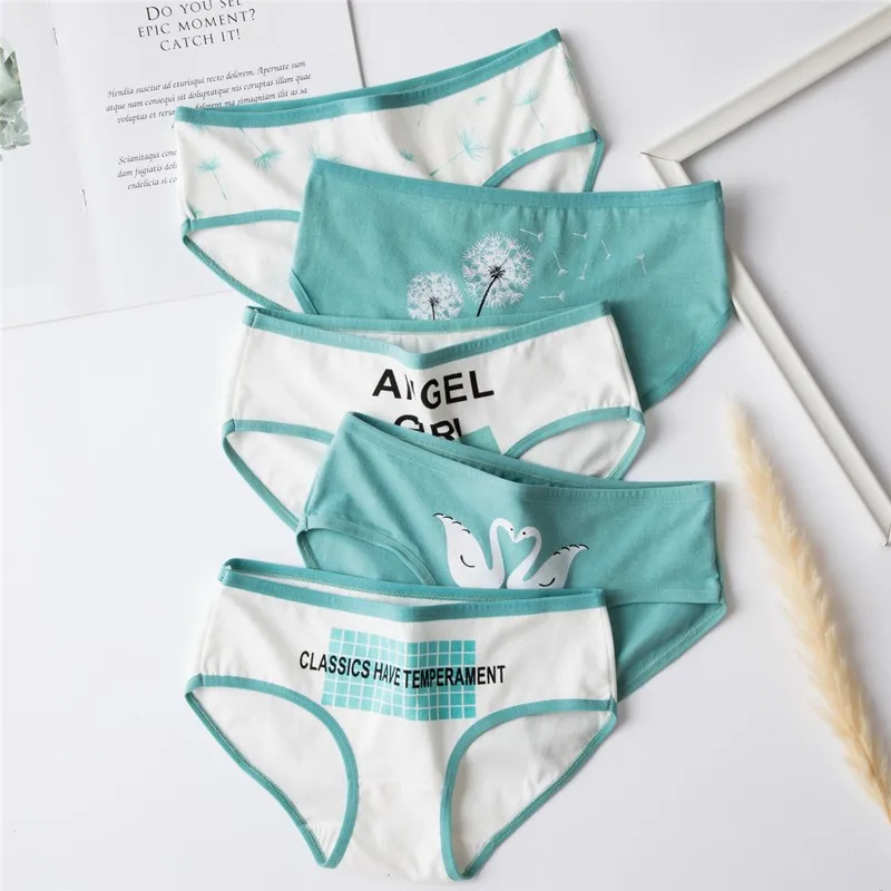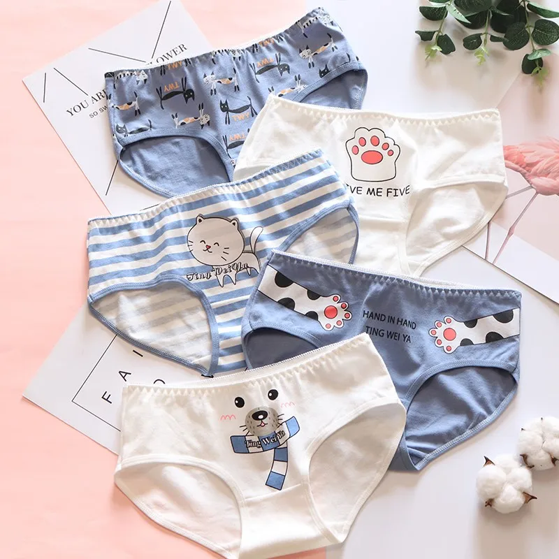 5 шт.лот, милое нижнее белье для девочек, женские хлопковые трусы для студентов, женские трусы с заниженной талией, сексуальные трусы