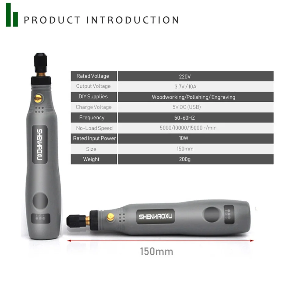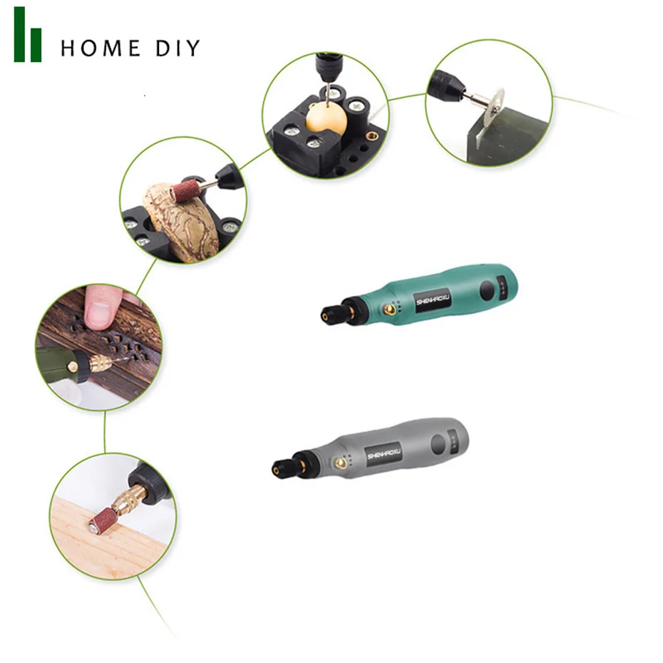 Миниатюрная Беспроводная электрическая дрель, 3 скорости, гравировальная ручка, вращающийся инструмент для резки, полировки, с аксессуарами Dremel