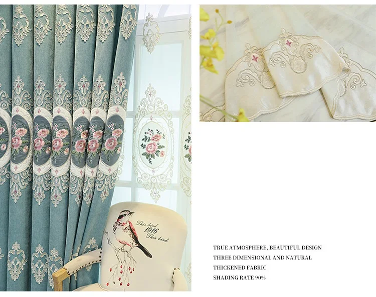 Штора с вышивкой, легкая, в европейском простом Европейском стиле, ...