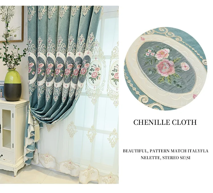 Роскошные шторы для гостиной в европейском стиле, шенилл с вышивкой...