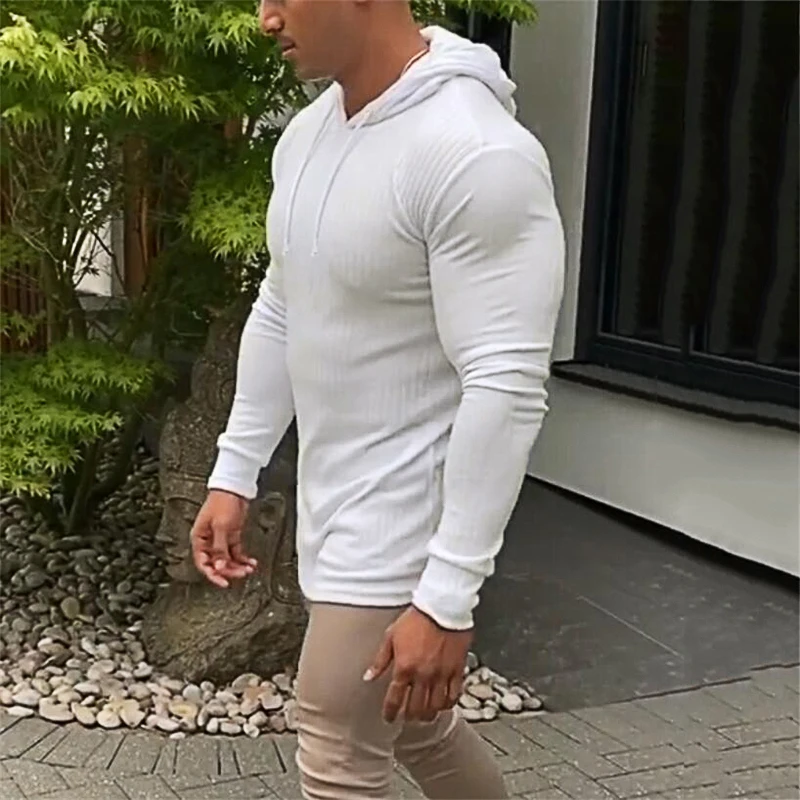 Тонкая футболка с капюшоном и длинными рукавами, Мужская облегающая...