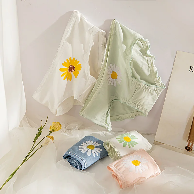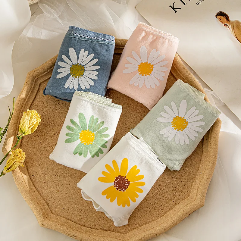 5 шт.лот, летнее свежее японское хлопковое нижнее белье с маленькими маргаритками, Симпатичные и бесшовные трусы для девочек, женские трусы