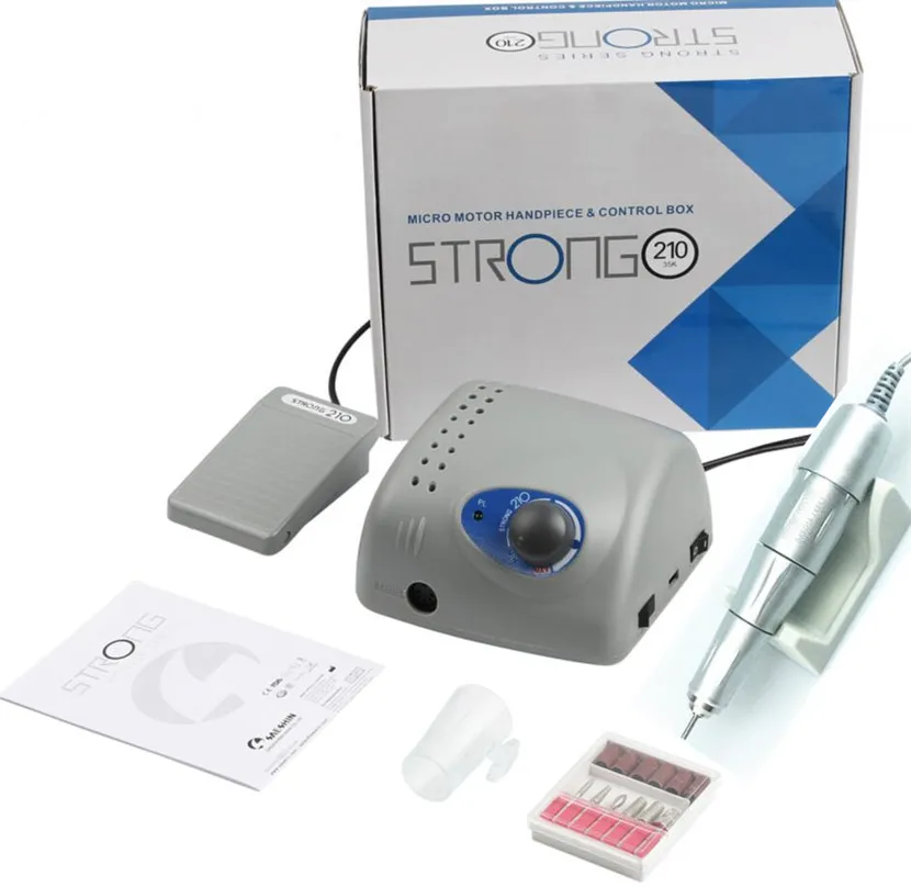 Фрезер STRONG 210 PRO 105L для маникюра и педикюра, серебристый наконечник, 65 Вт, 45000 обмин