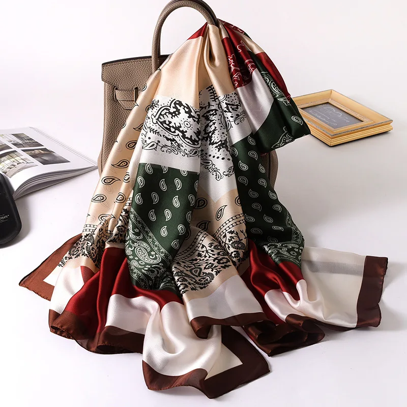 2022 Новая мода весна лето бандана роскошный кешью цветочные шарфы женский бренд 100% чистый Шелковый шарф женский платок с принтом хиджаб