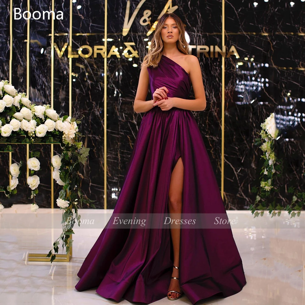 Женское атласное вечернее платье Booma, длинное вечернее платье на одно плечо, с высоким разрезом по бокам, плиссированное, ТРАПЕЦИЕВИДНОЕ, для выпускного