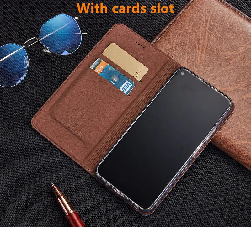 Магнитный флип-чехол из натуральной кожи, Карманный чехол для карт ...