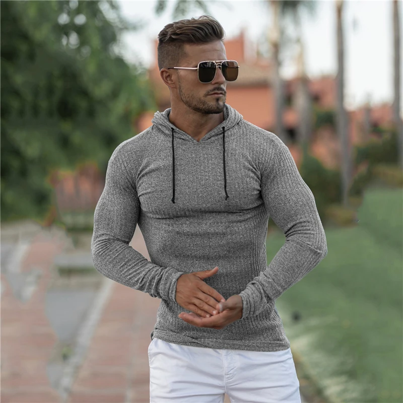 Новый модный весенний вязаный свитер с капюшоном для мужчин, тонкий...