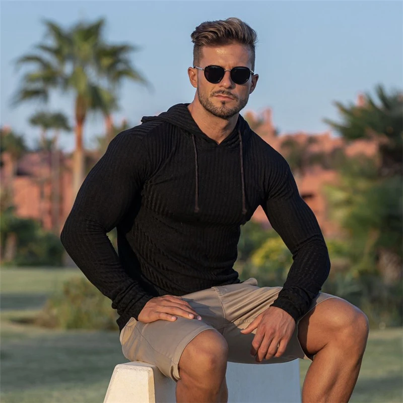 Тонкая футболка с капюшоном и длинными рукавами, Мужская облегающая...