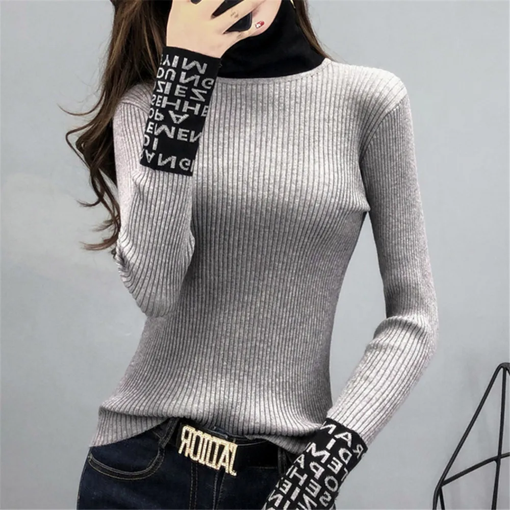 Свитер женский трикотажный с длинным рукавом, свитера и пуловеры, облегающий вязаный свитер с высоким воротом, весна-осень 2020